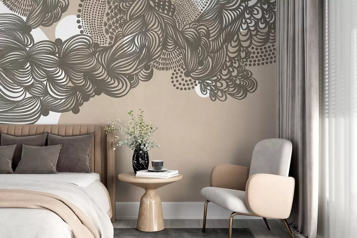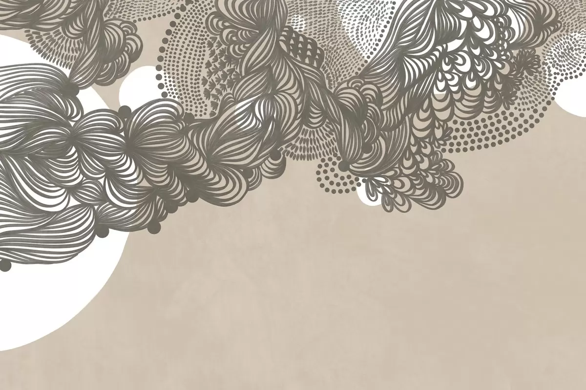 Wall murals Abstract textured design on a beige background , with intricate line work and dotted textures Nr. w09621