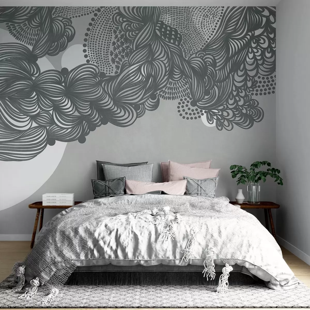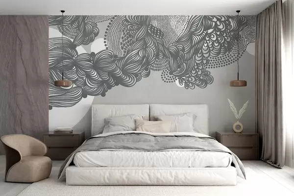 Wall murals Abstract textured design on a gray background , with intricate line work and dotted textures Nr. w09621v1