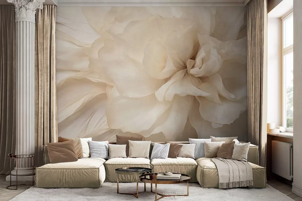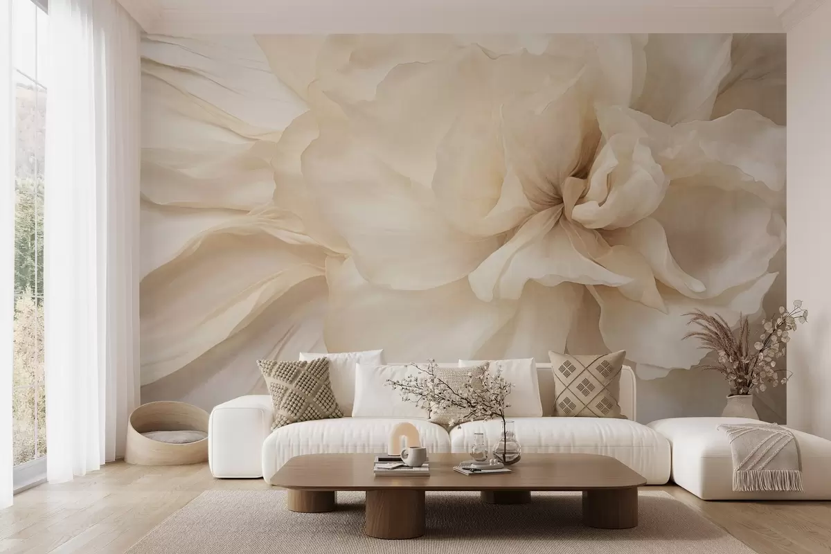 Wall murals Textured delicate, light-colored flower with translucent petals, soft abstract background Nr. w09632
