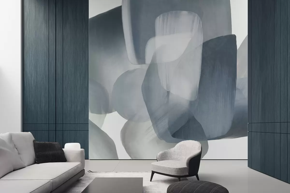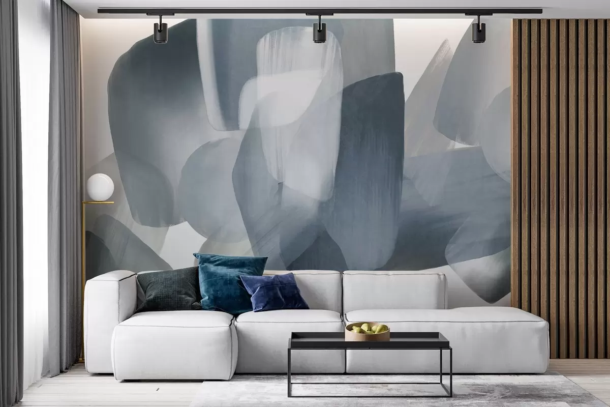 Wall murals Abstract texrured shapes in muted blue and gray colors, with soft edges and overlapping layers Nr. w09642v1