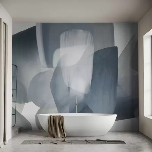 Wall murals Abstract texrured shapes in muted blue and gray colors, with soft edges and overlapping layers Nr. w09642v1