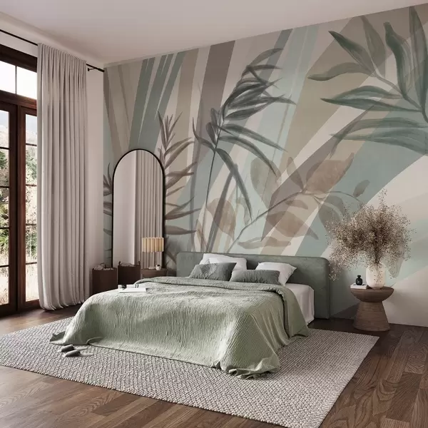 Wall murals Tall textured grass and leaves in muted earth tones, with abstract lines in the background, creating organic print Nr. w09643