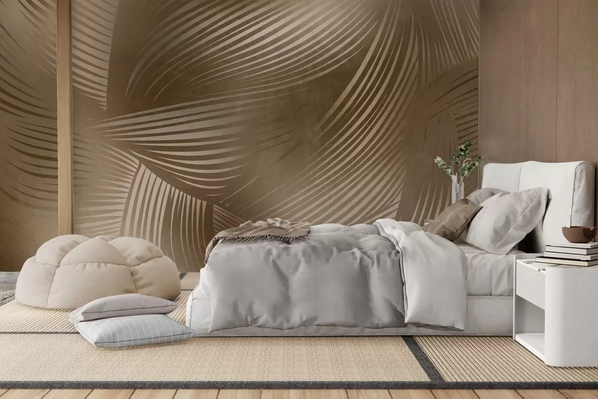 Wall murals Abstract print of flowing, curved lines in shades of dark brown creating a textured, modern art Nr. w09646