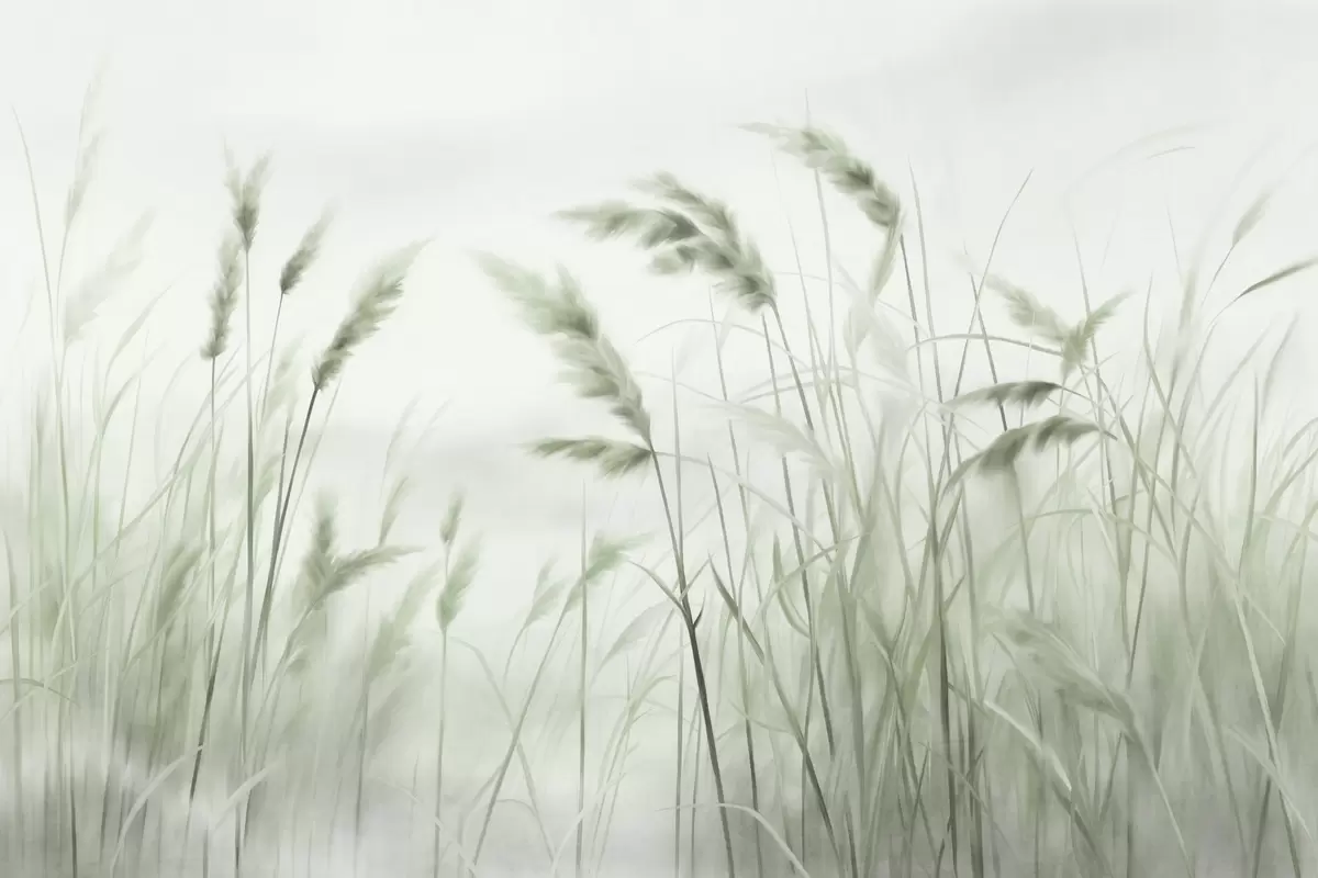 Wall murals Tall, textured dry grass with ears of wheat in the field against a soft, pale background Nr. w09648v1
