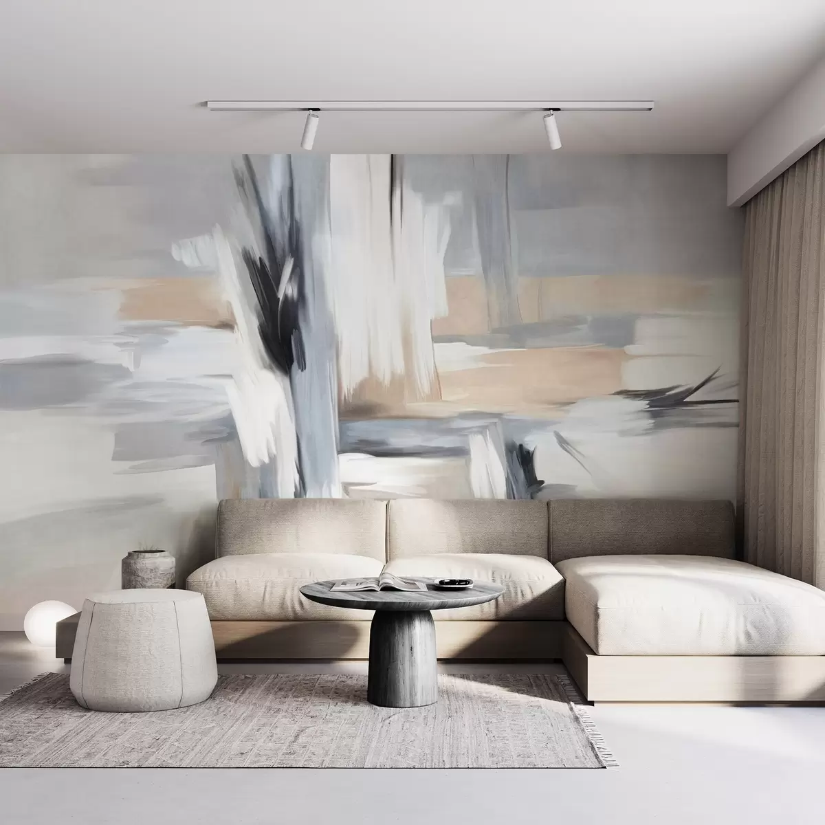 Wall murals Abstract textured painting style with brushstrokes in shades of white, gray and beige Nr. w09651