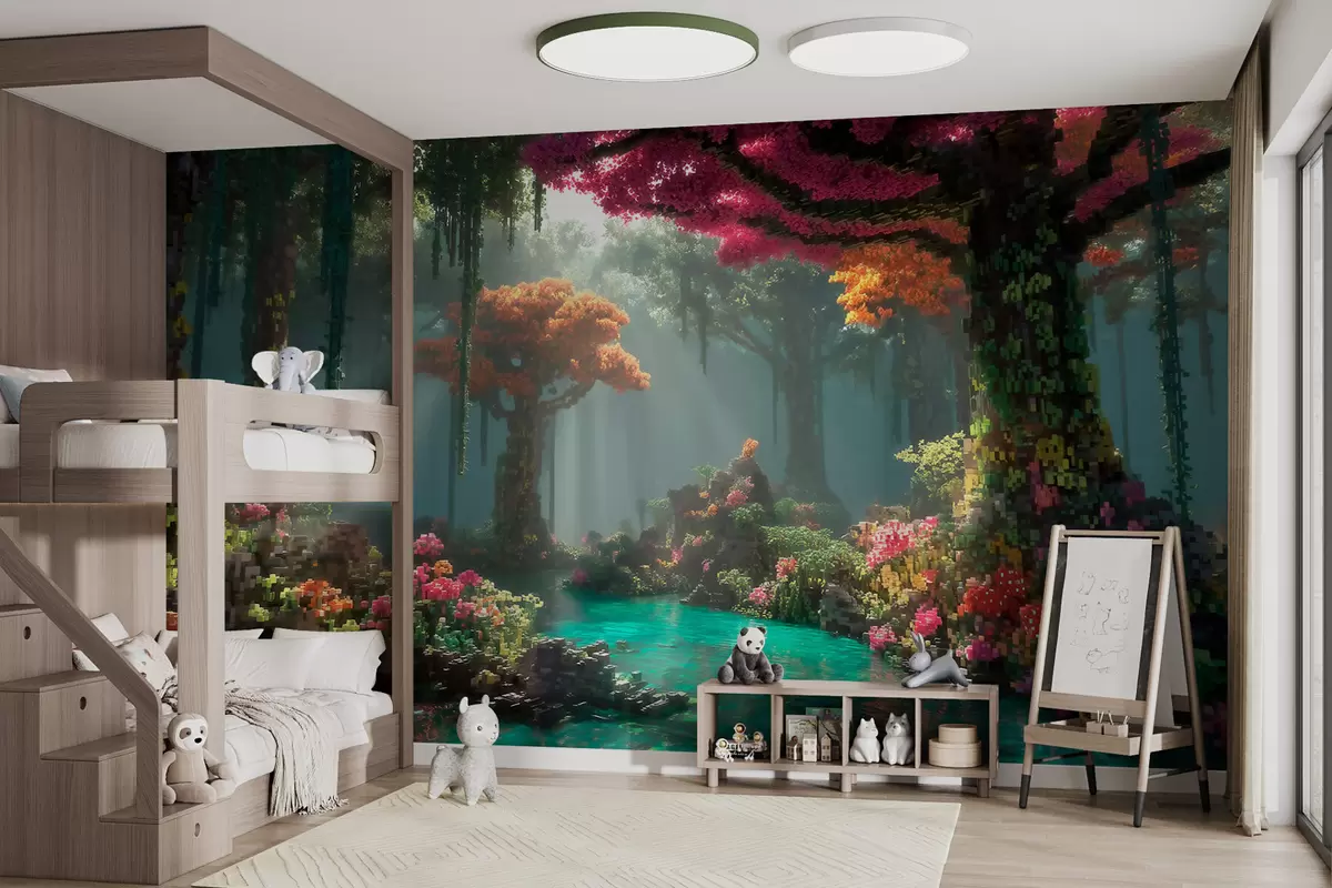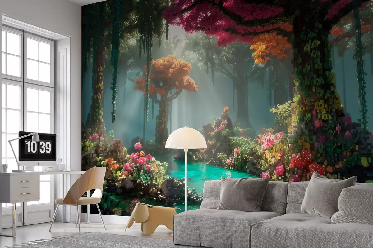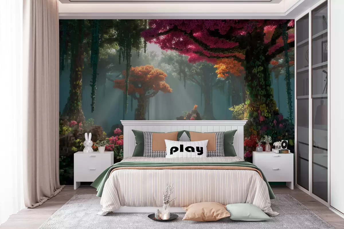 Wall murals Pixel enchanted forest grove inspired by video games Nr. w09683