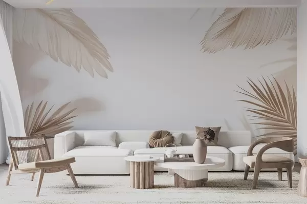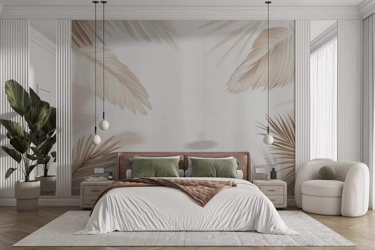 Wall murals Beige tropical decor with palm leaf silhouettes and soft shadows Nr. w09714
