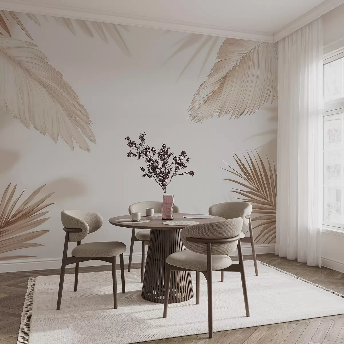 Wall murals Beige tropical decor with palm leaf silhouettes and soft shadows Nr. w09714