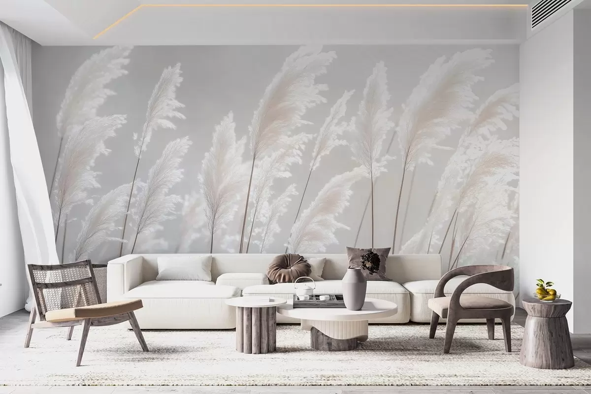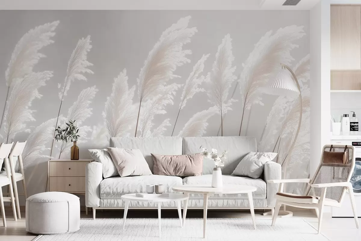 Wall murals Soft white pampas grass in gentle morning light Nr. w09717