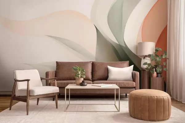 Wall murals Abstract pastel waves in orange and green tones Nr. w09718