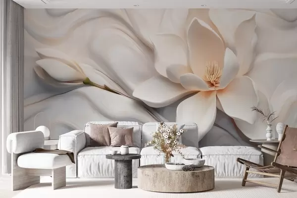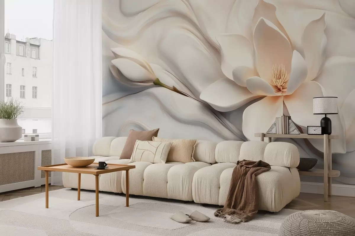 Wall murals Three-dimensional white magnolia with marble texture imitation in relief Nr. w09729
