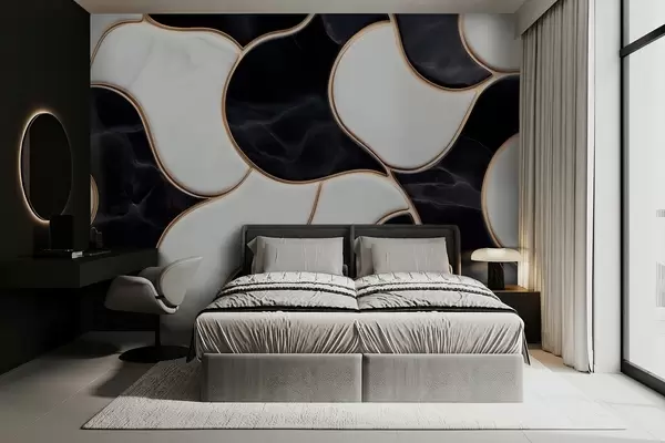 Wall murals Abstract imitation of a marble composition in black and white tones with yellow lines Nr. w09733