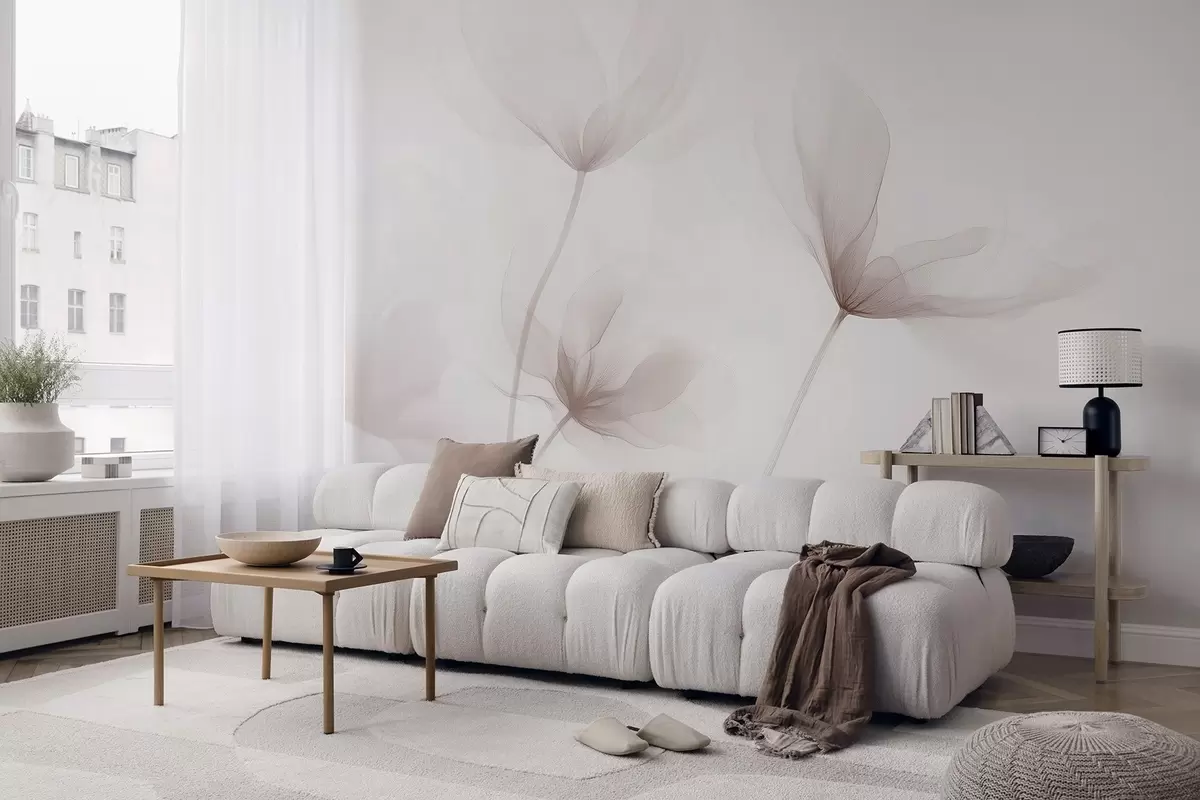 Wall murals Airy beige flowers in minimalist light style Nr. w09734