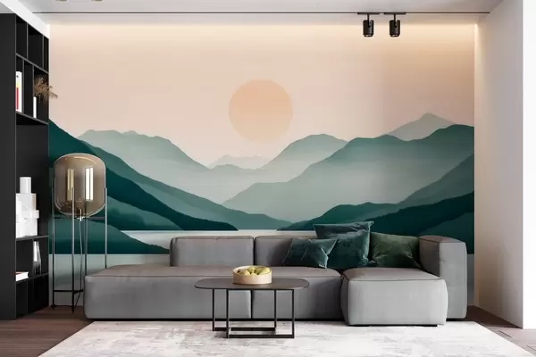 Wall murals Quiet mountain landscape with the sun over the lake Nr. w09735