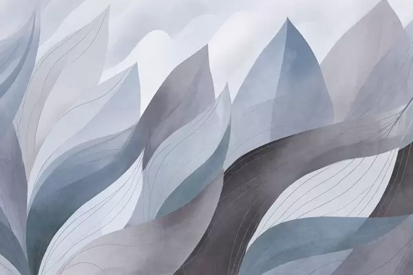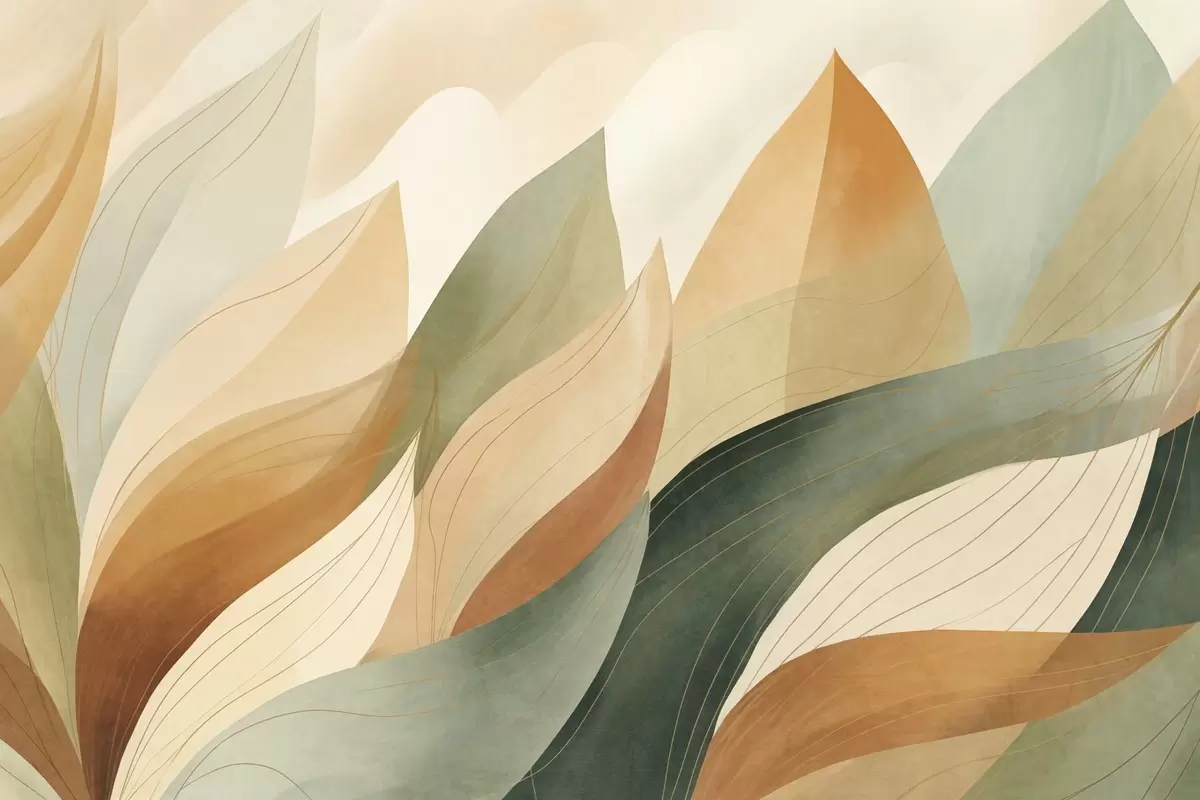 Wall murals Abstract leaves, muted earth tones of green, orange with delicate line details , soft watercolor texture Nr. w09736