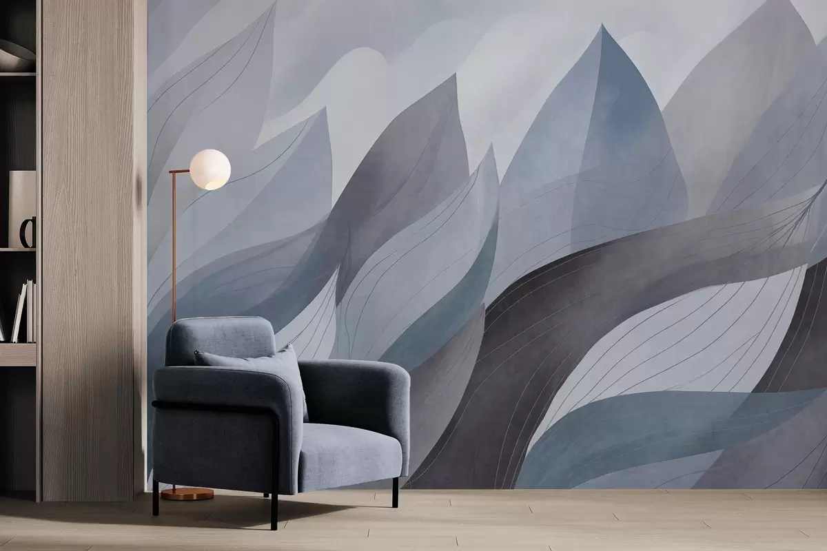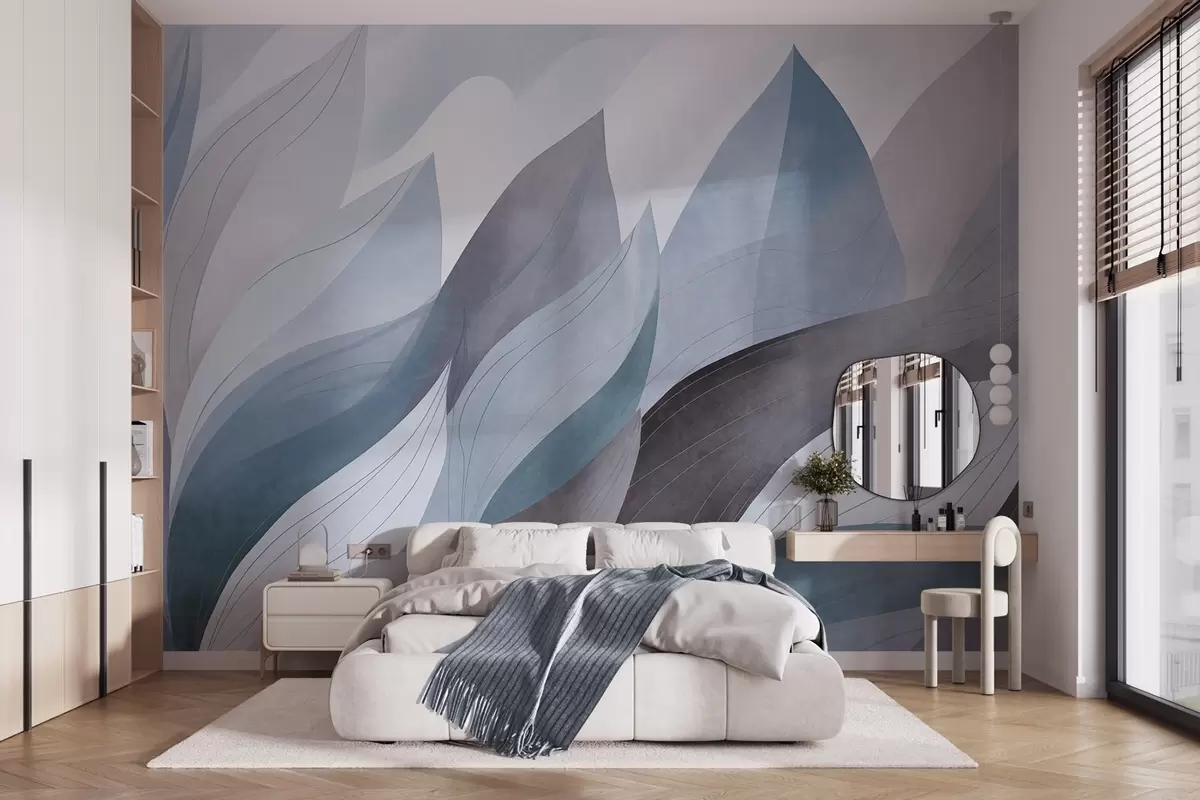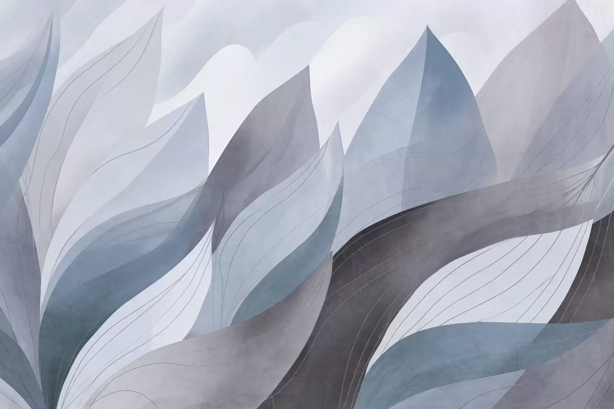 Wall murals Abstract leaves, muted earth tones of blue with delicate line details , soft watercolor texture Nr. w09736v1