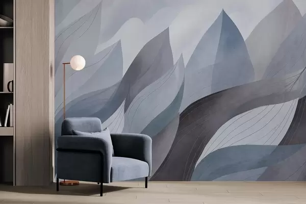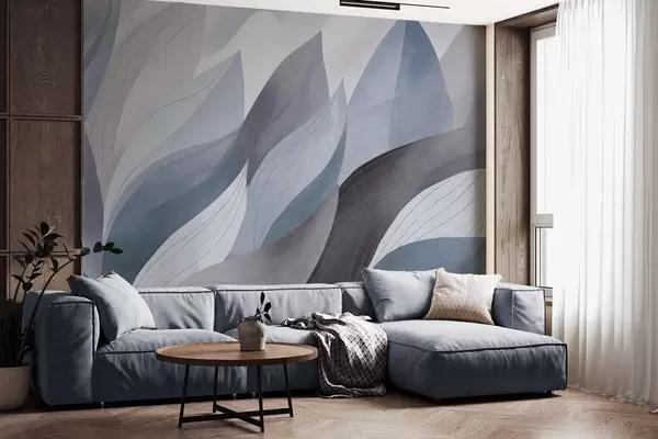 Wall murals Abstract leaves, muted earth tones of blue with delicate line details , soft watercolor texture Nr. w09736v1