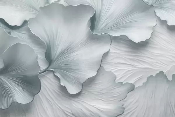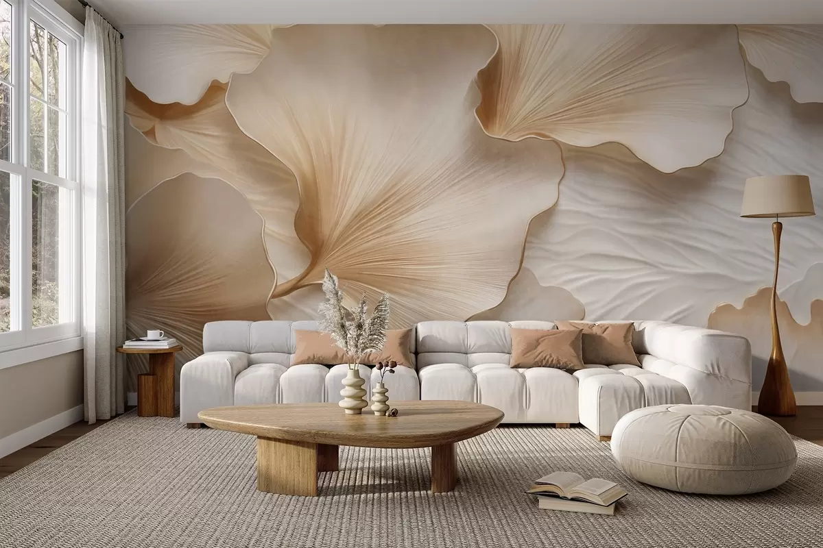 Wall murals Textured, beige and white ginkgo leaves petals with delicate organic print Nr. w09741