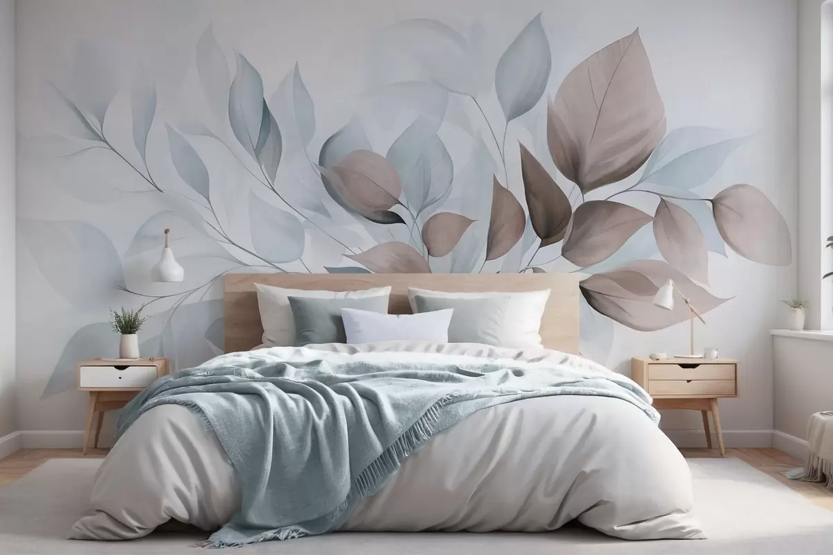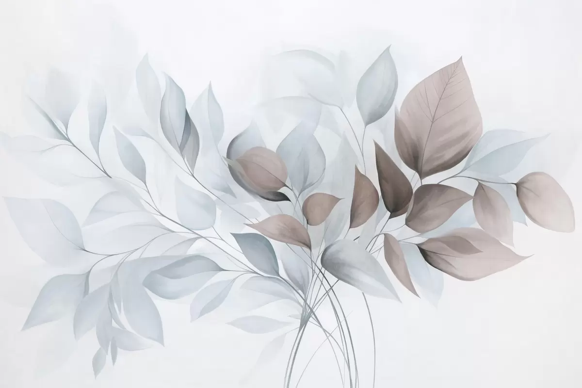 Wall murals Abstract translucent leaves in shades of blue, beige and brown, textured art Nr. w09744v1