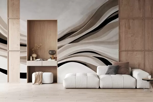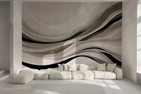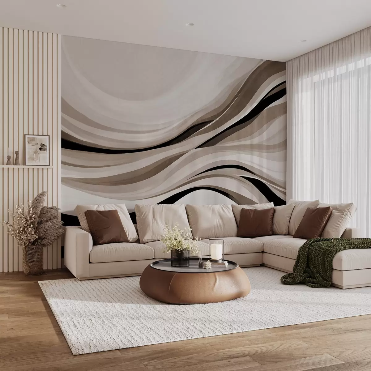 Wall murals Abstract wavy lines in shades of beige and black against a light background, textured art Nr. w09748