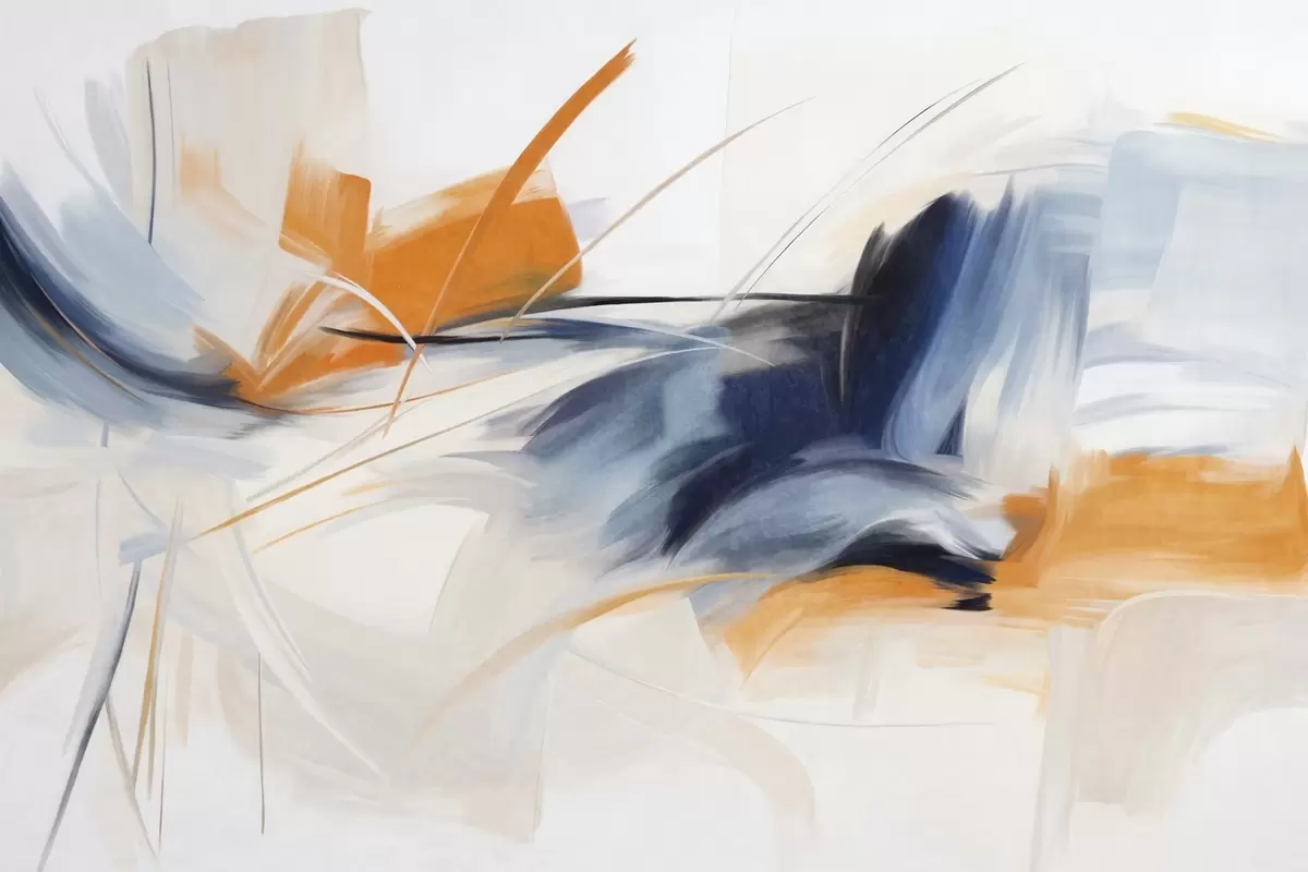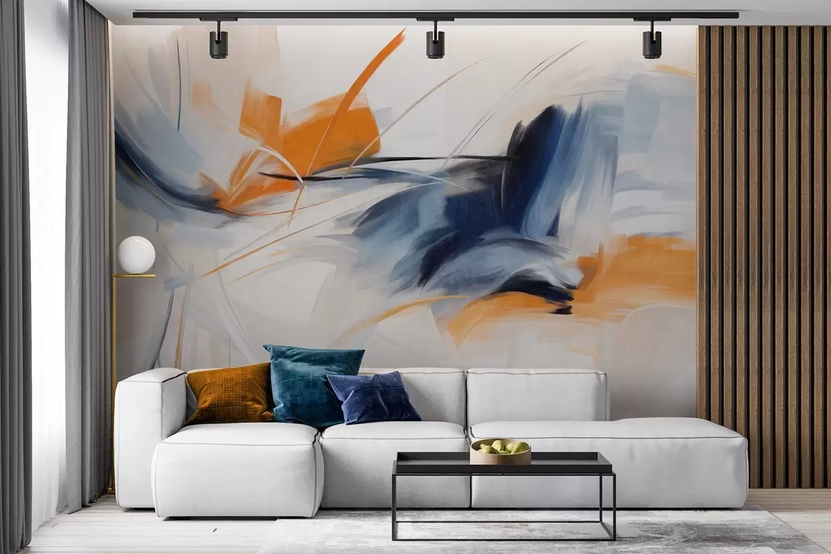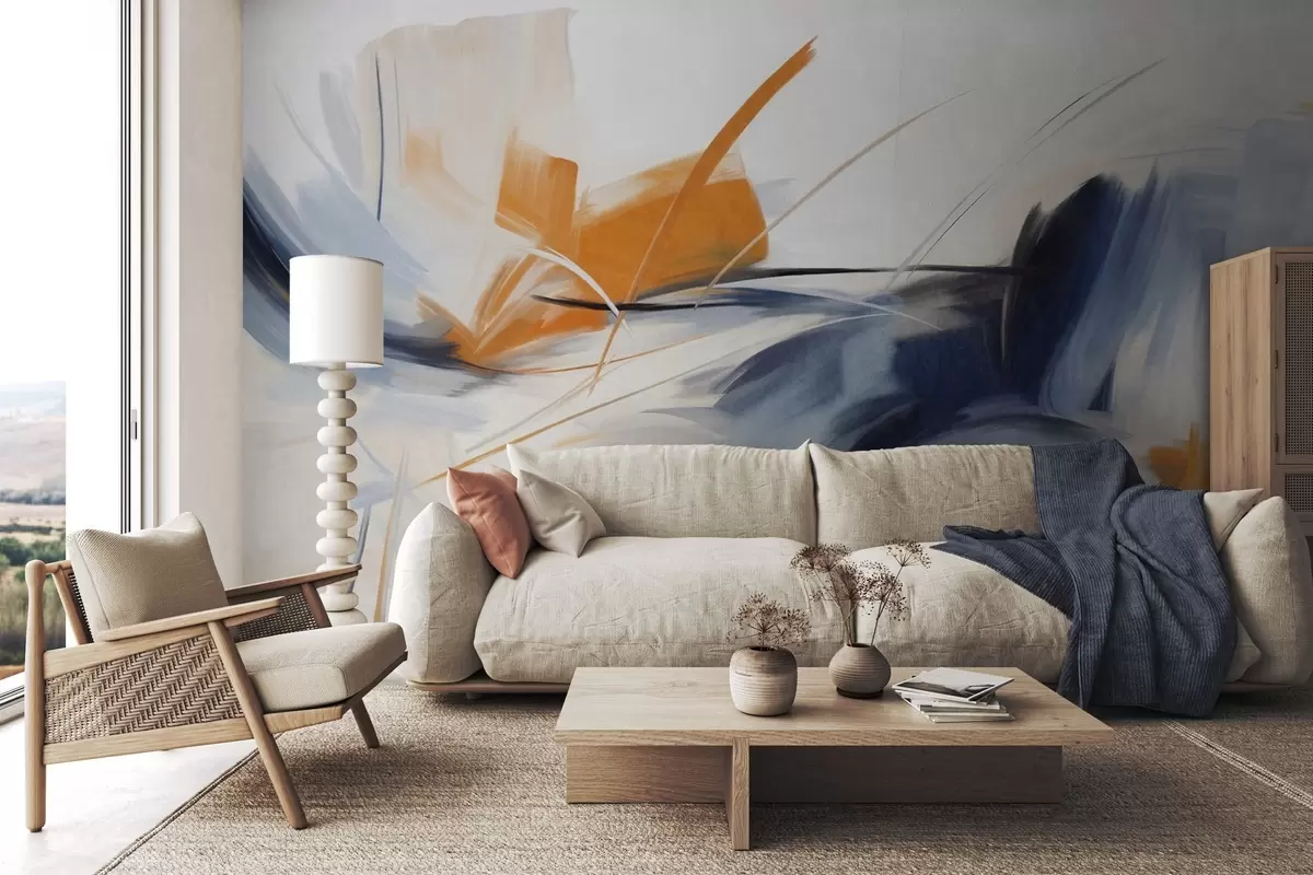 Wall murals Abstract painting style with orange and blue textured brushstrokes Nr. w09755