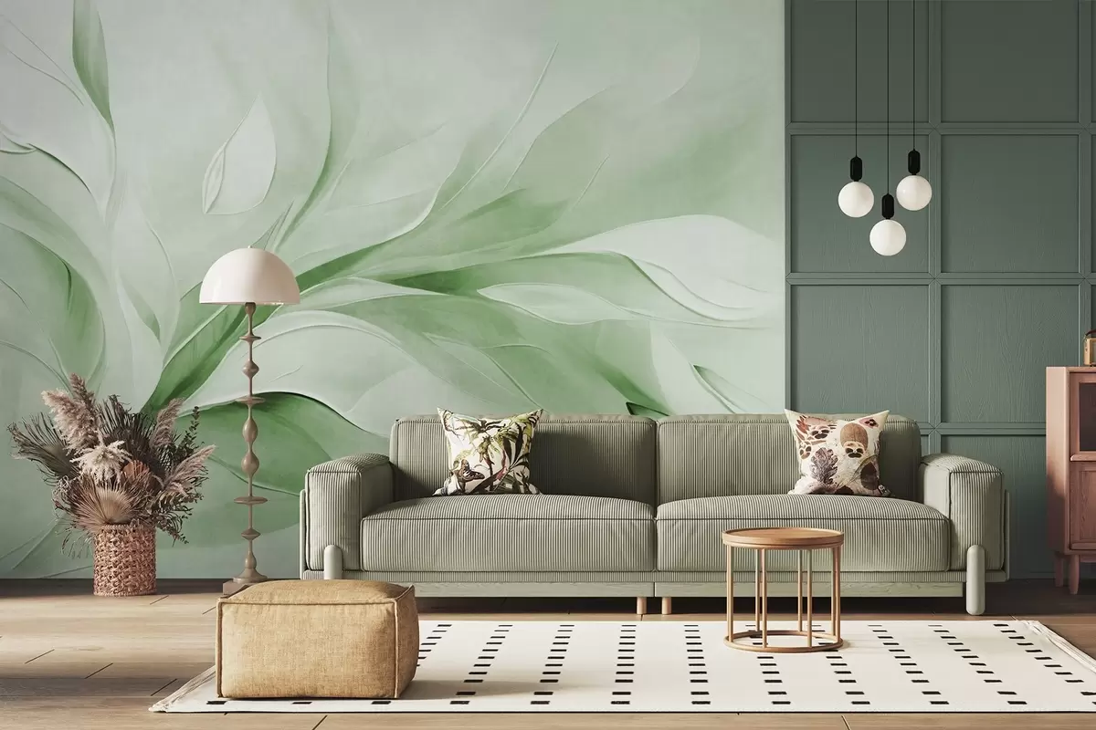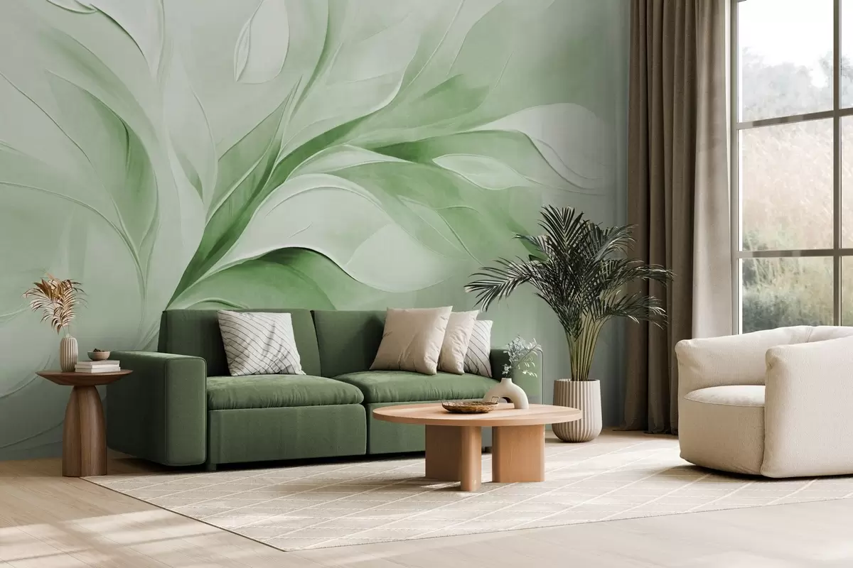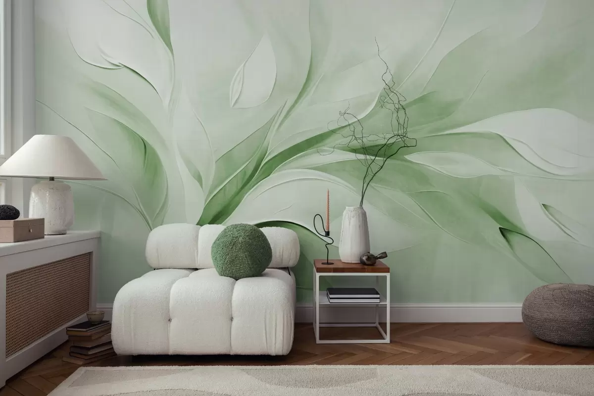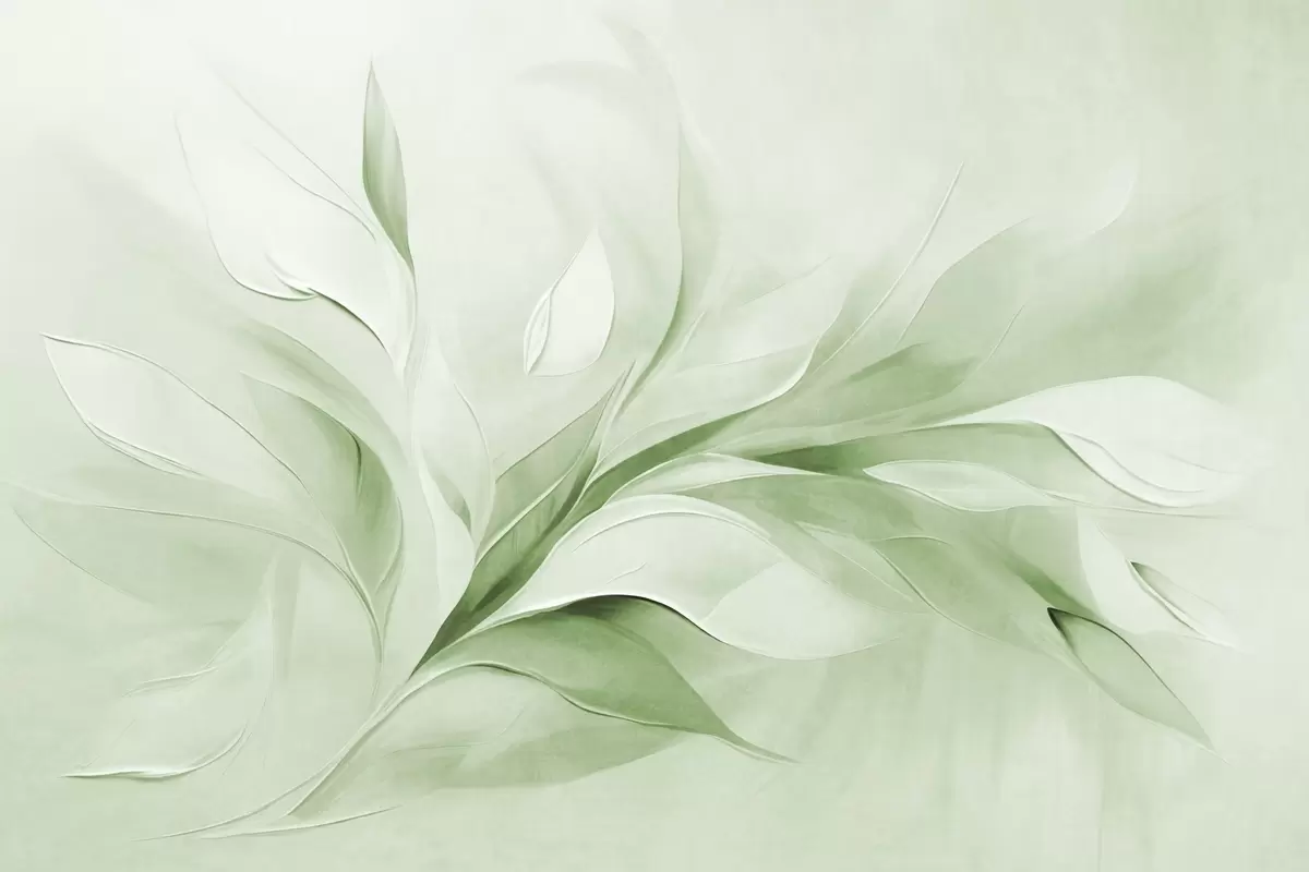 Wall murals Abstract textured painting style of green and white flowing leaves Nr. w09765v2