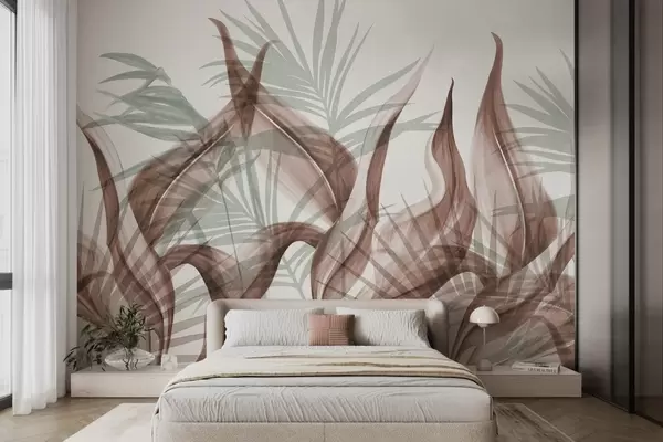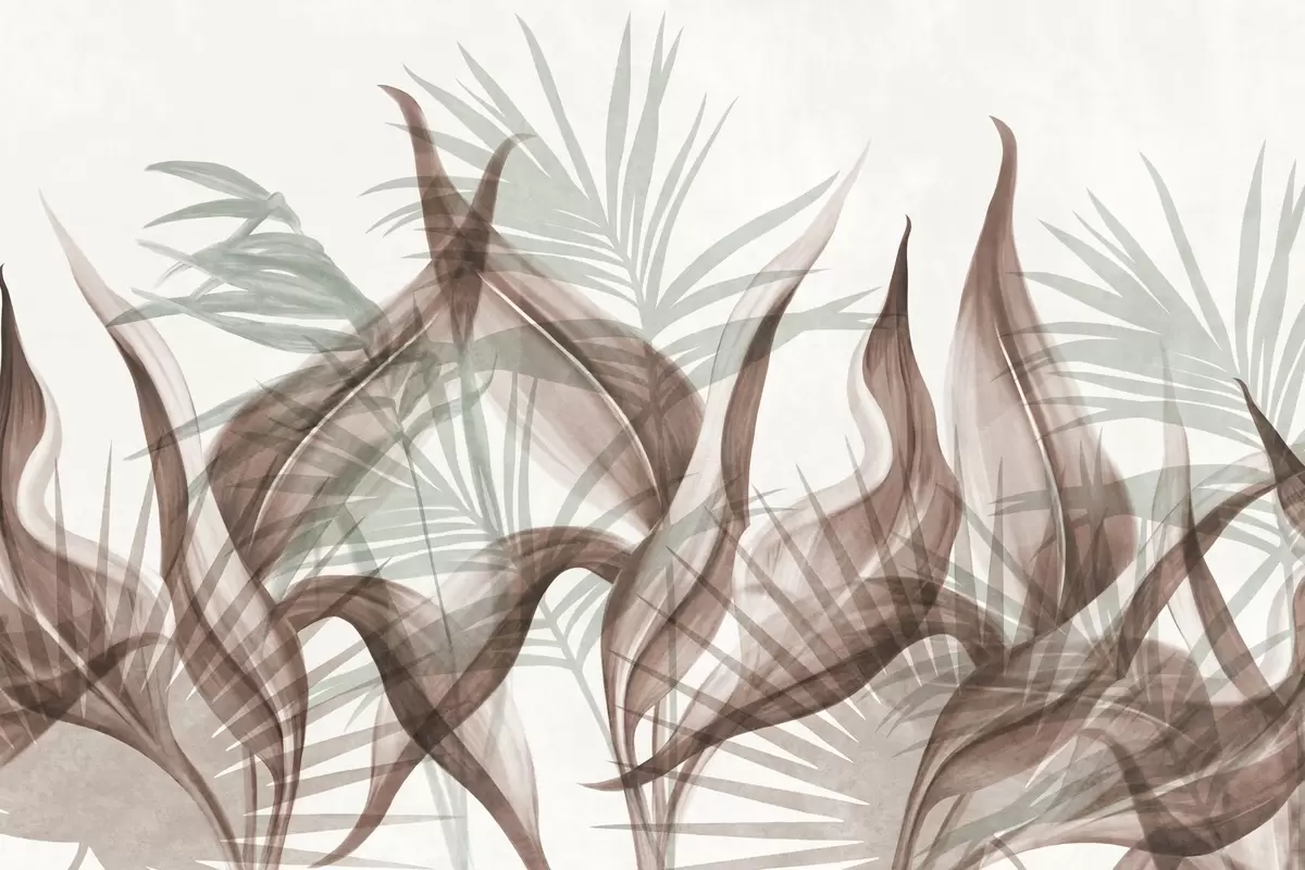 Wall murals Tropical leaves in shades of brown and green against a white background, textured watercolor style Nr. w09772