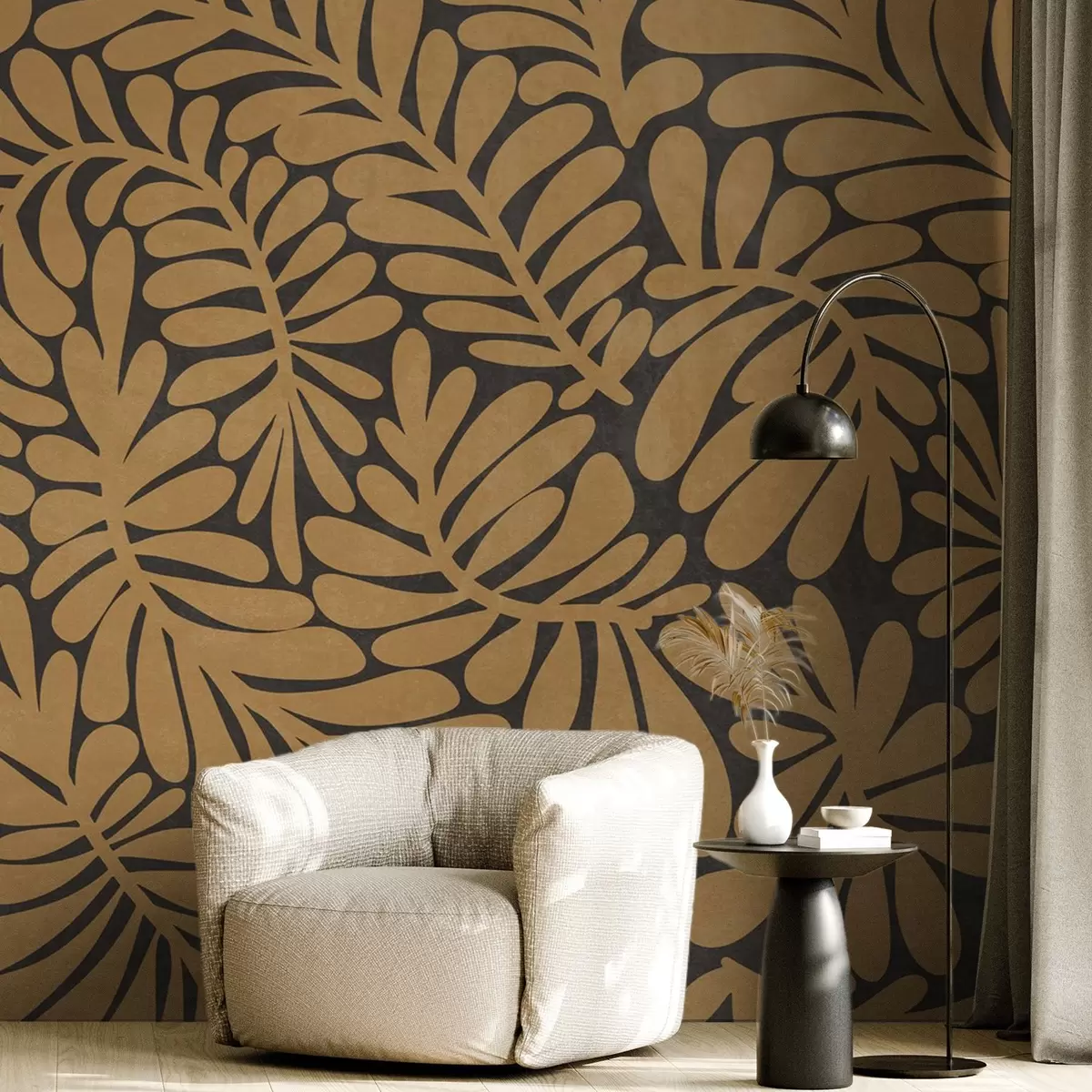 Wall murals Stylized mustard yellow leaves against a dark gray background, textured art Nr. w09775