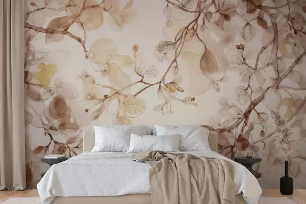 Wall murals Airy hanging branches in beige tones in watercolor style Nr. w09795