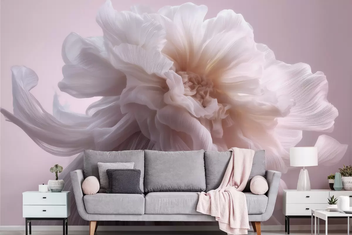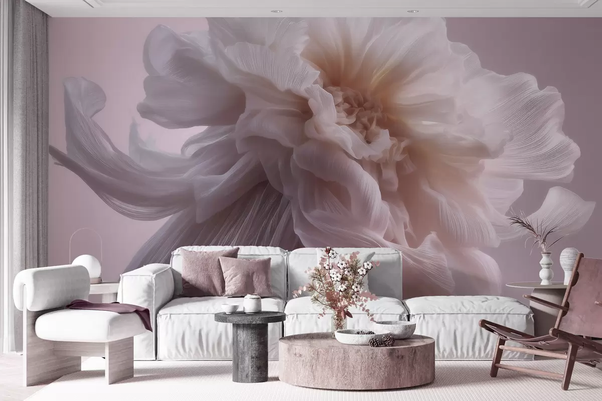 Wall murals Volumetric silk flower in soft pink and beige tones Nr. w09809