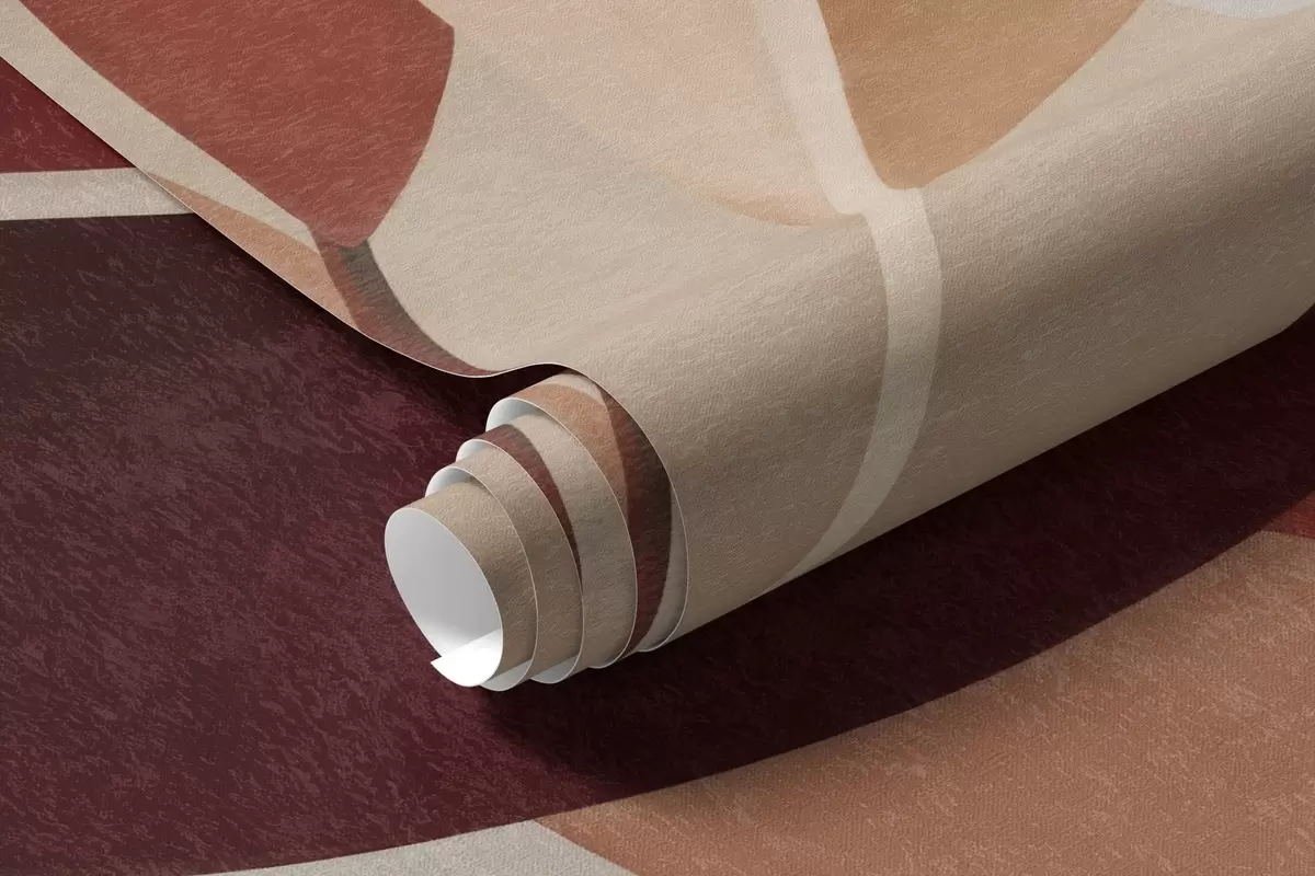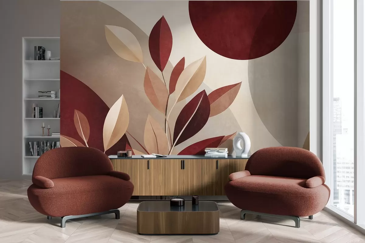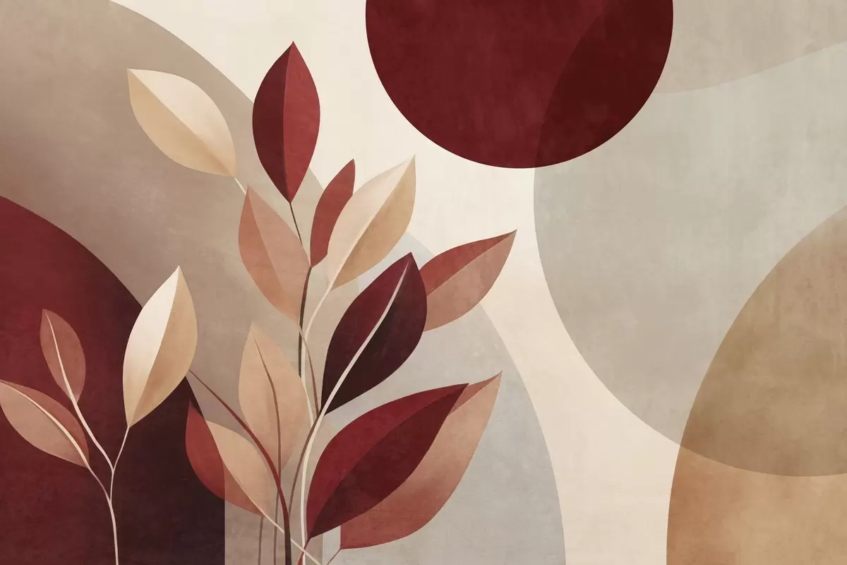 Wall murals Textured bordo and beige leaves on a background of abstract shapes, minimalism, modern art Nr. w09829