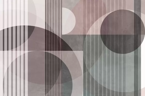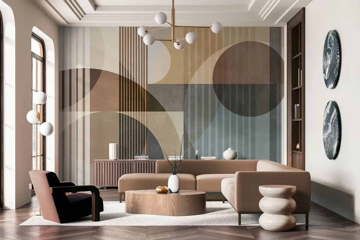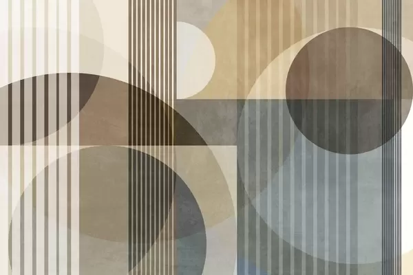 Wall murals Abstract geometric shapes with circles and lines, muted earth tones, textured, layered composition Nr. w09834