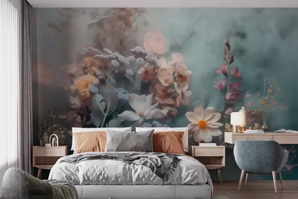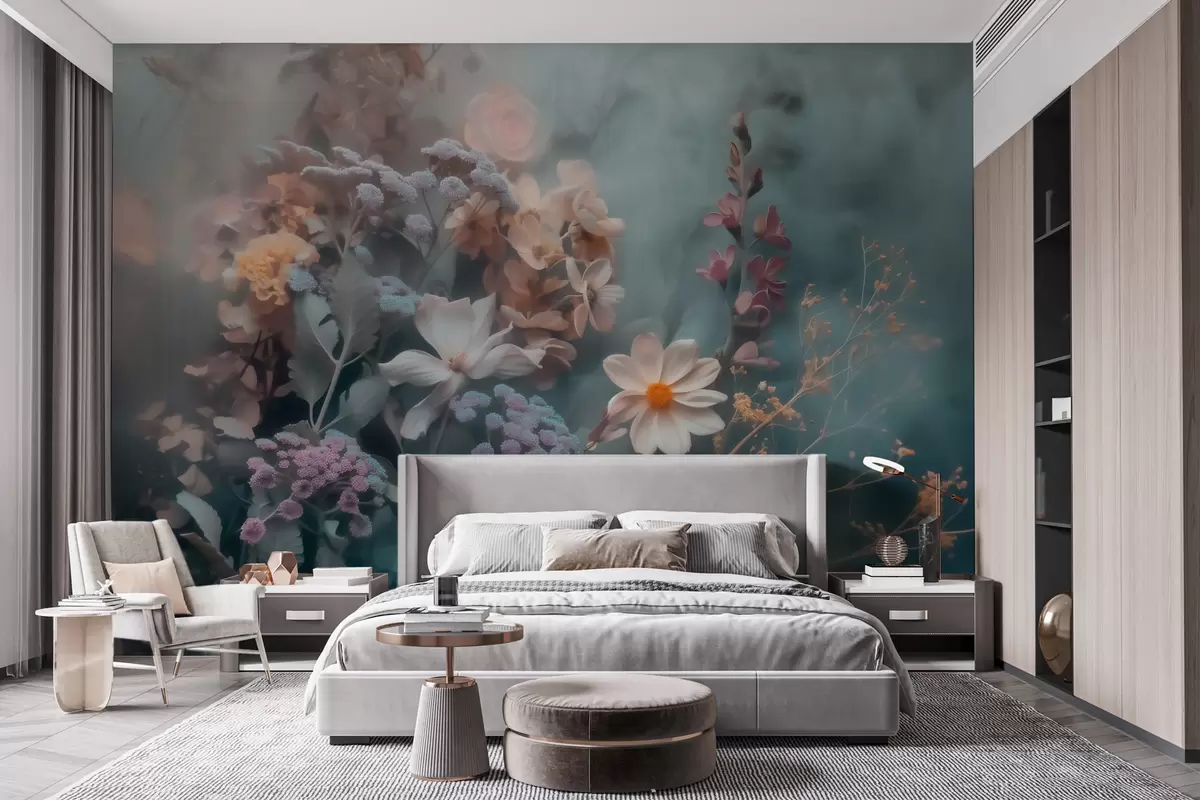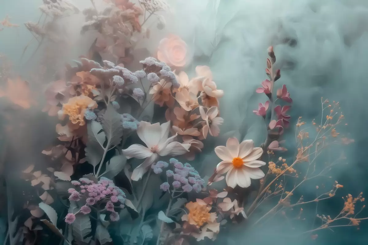Wall murals A dreamy composition of wildflowers in a light haze of pastel tones Nr. w09846