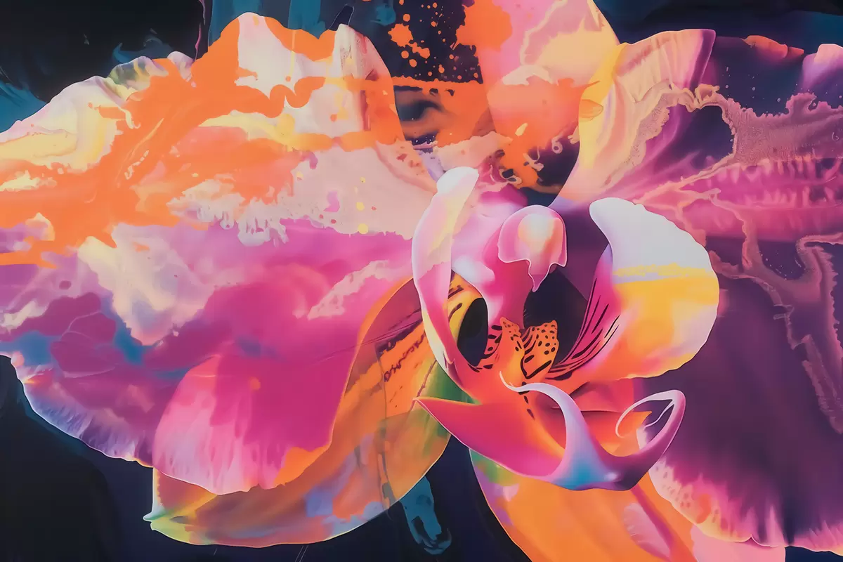 Wall murals A vibrant abstract orchid flower with rich colors and dynamic forms in watercolor style Nr. w09855