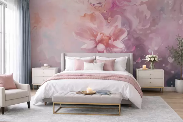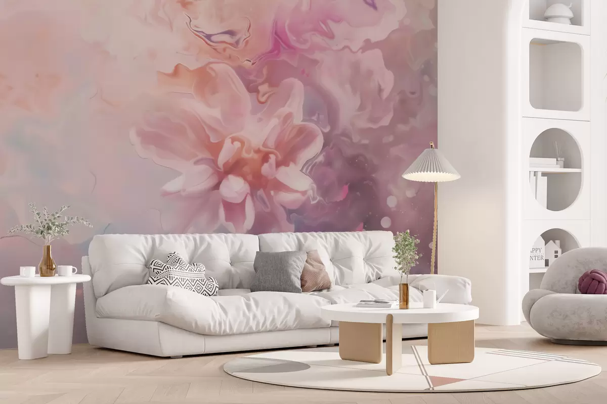 Wall murals An abstract composition with a flower and soft pink washes in watercolor style Nr. w09859
