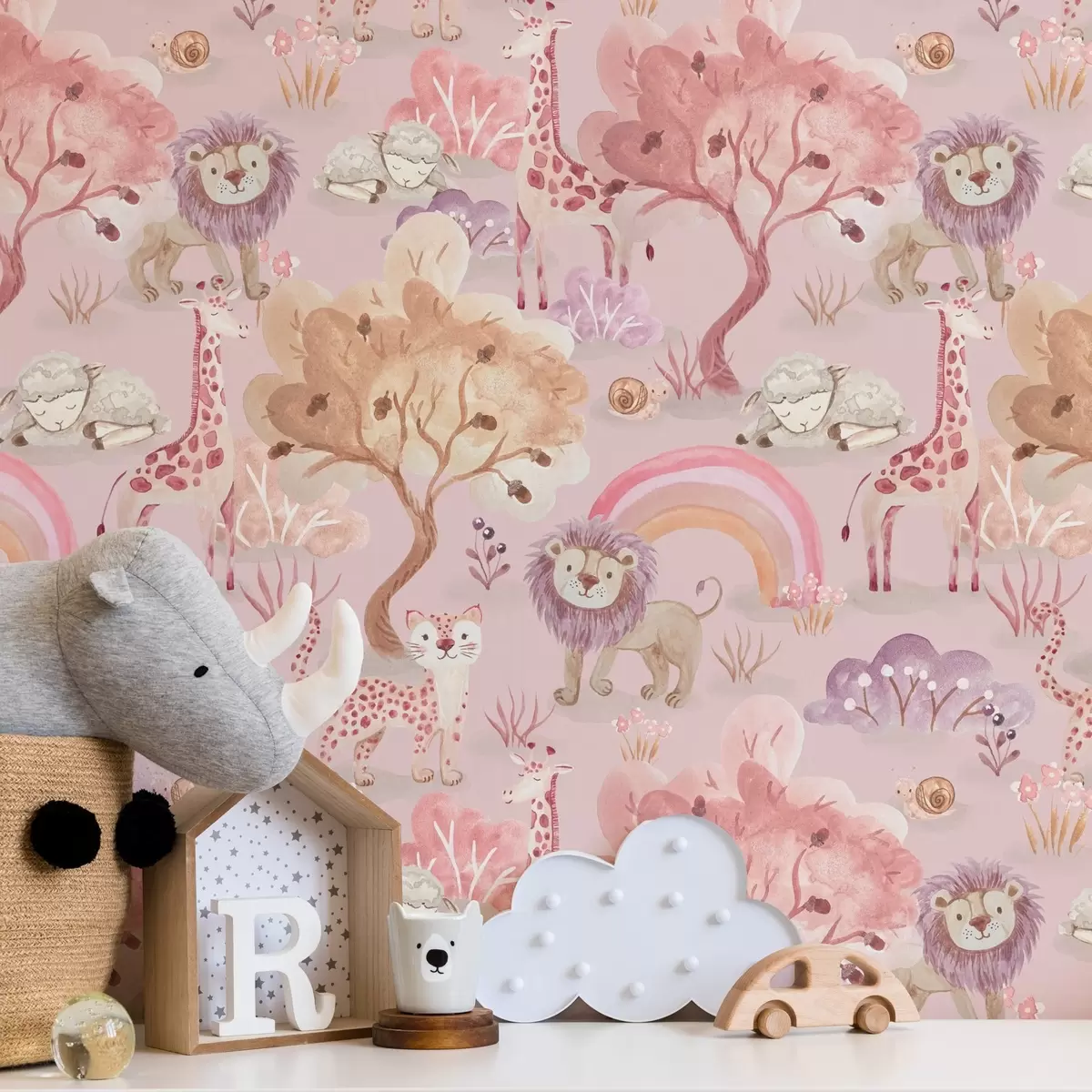 Wallpapers Lion cubs, giraffes and rainbows in a pastel forest Nr. a00112