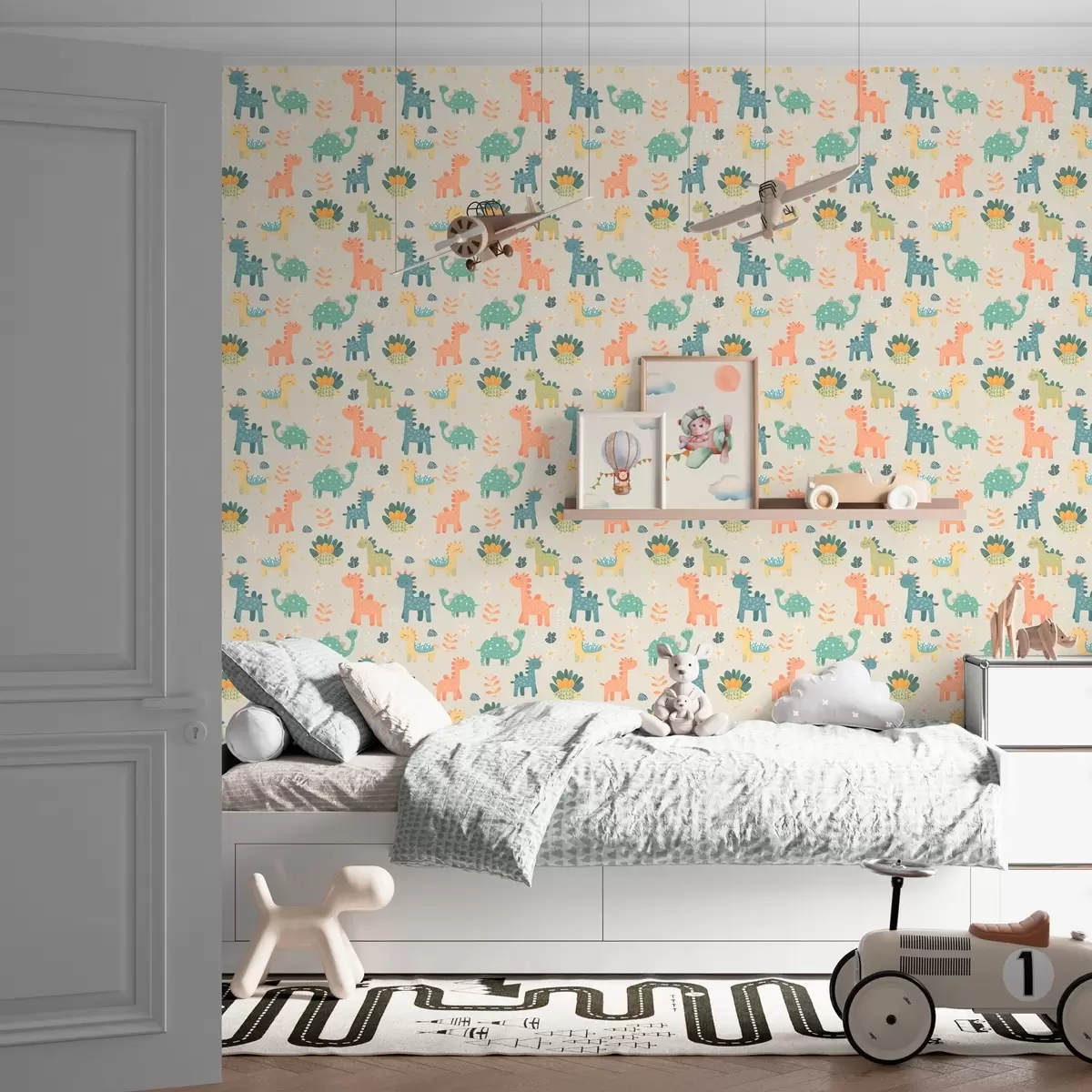 Wallpapers Children's dinosaurs in pastel colours on a light background Nr. a00125