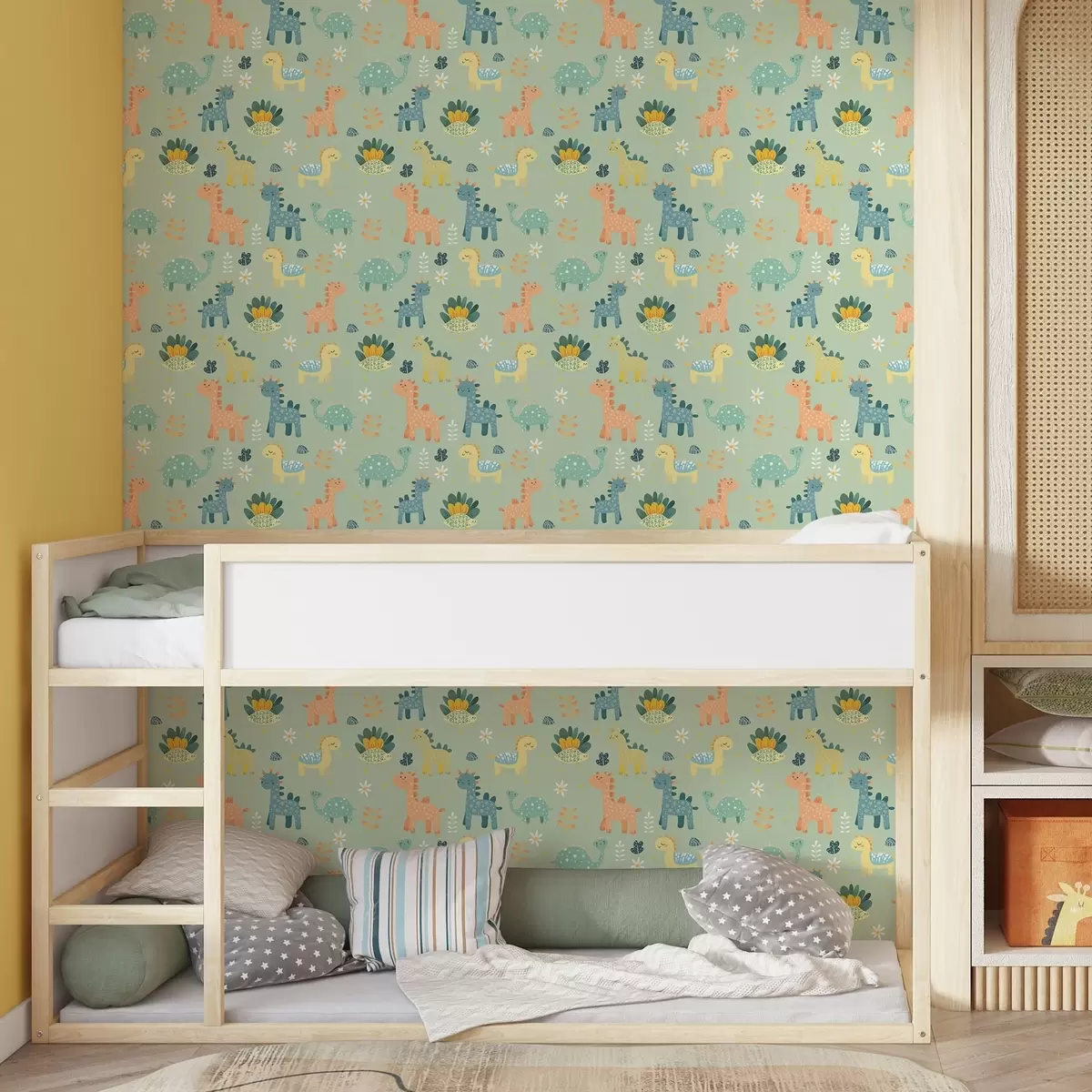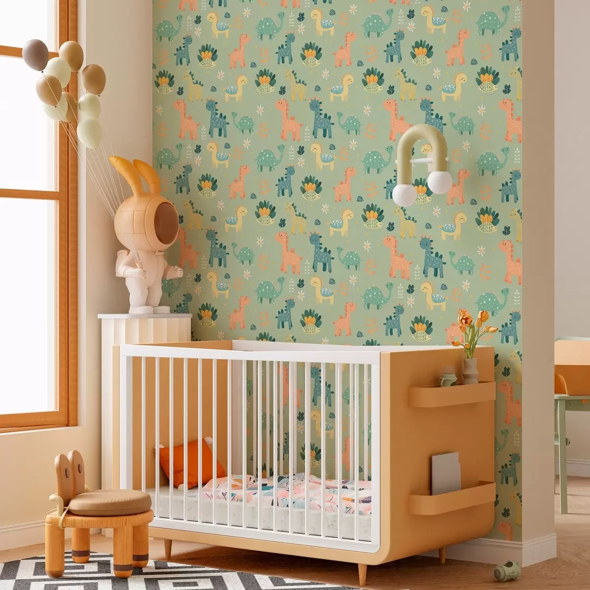Wallpapers Funny dinosaurs in a soft green palette on a light background Nr. a00125v1