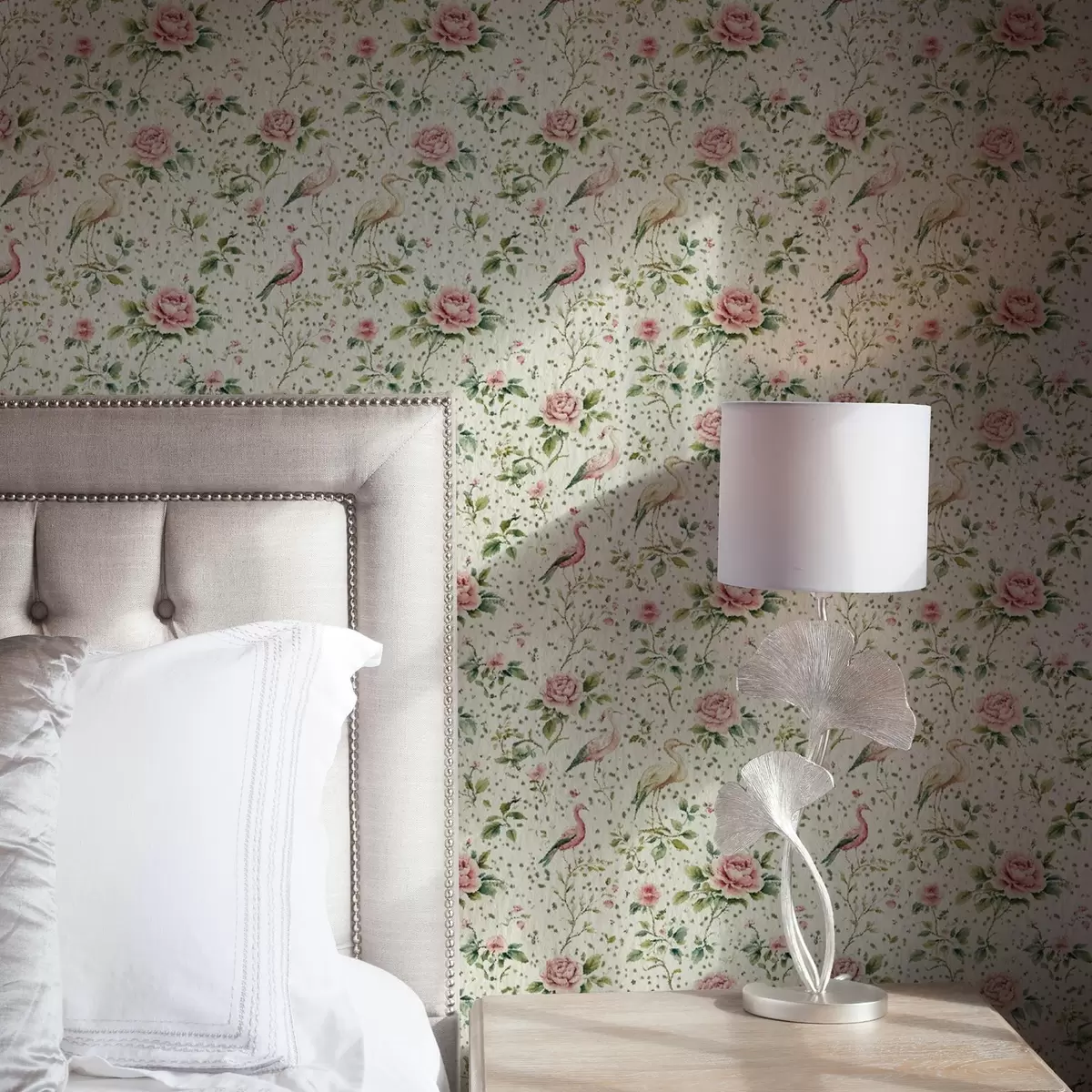Wallpapers Pastel pink roses and birds in shabby chic style Nr. a00201