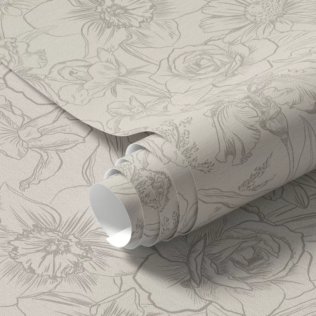 Wallpapers Contour flowers on a cream background, delicate floral pattern Nr. a00218