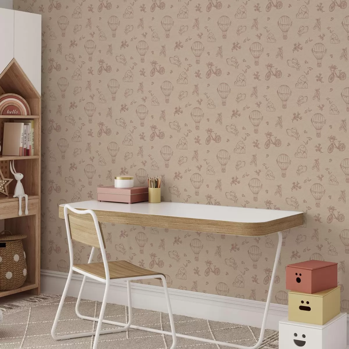Wallpapers Baby pink pattern with dog, flowers and air Nr. a00279