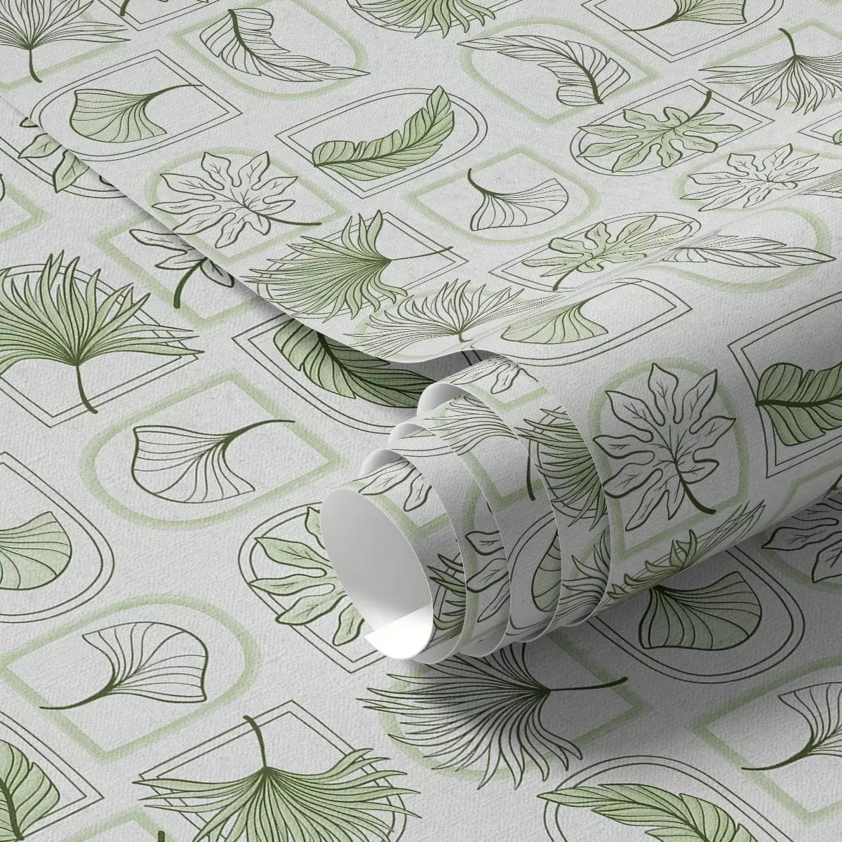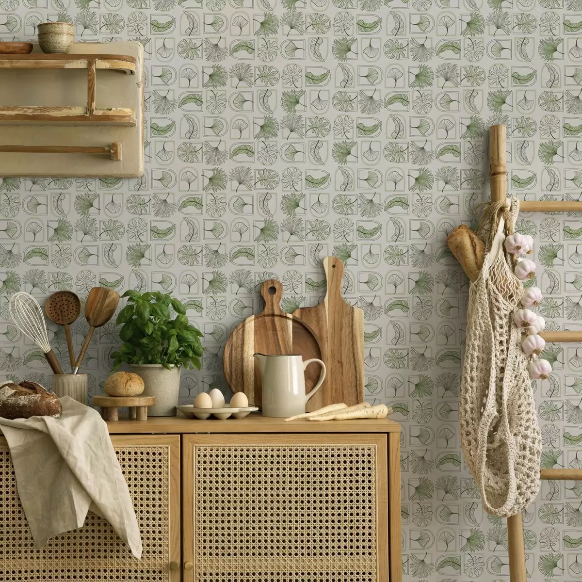 Wallpapers Graphic pattern with green leaves in squares Nr. a00287