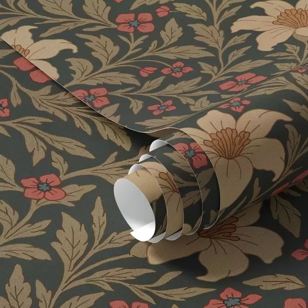 Wallpapers Dark background with yellow and red flowers in Art Nouveau style Nr. a00293