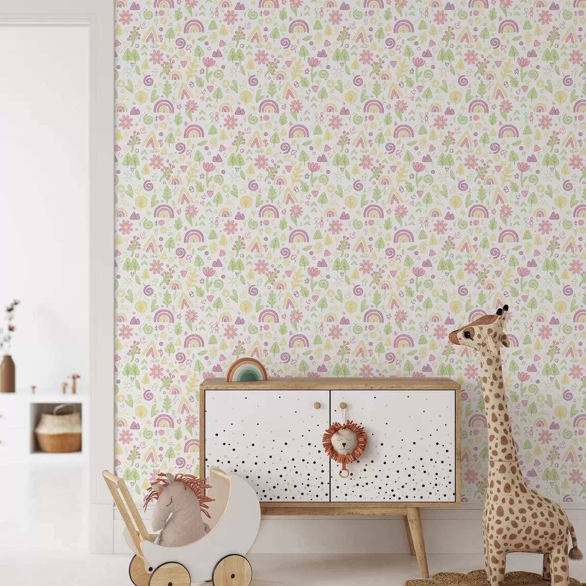 Wallpapers Children’s drawing with rainbows, flowers, and trees Nr. a00296