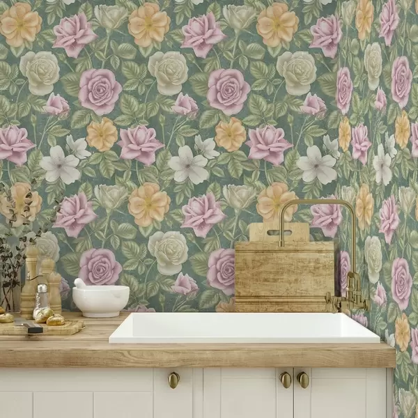 Wallpapers Pink cream and yellow roses on a green background Nr. a00300