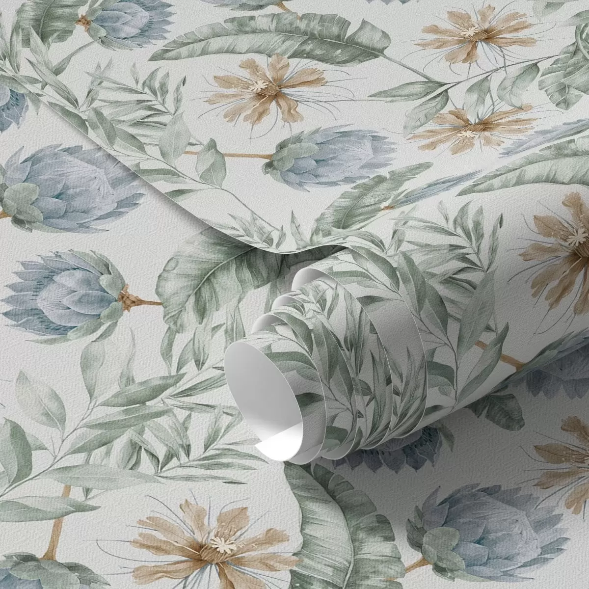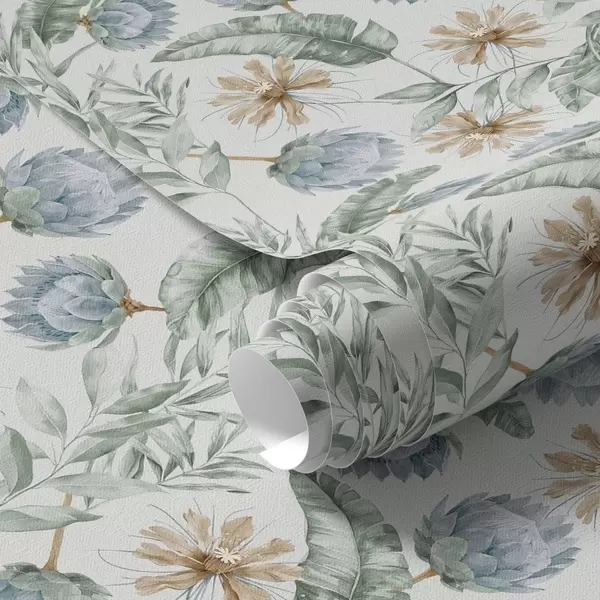 Wallpapers Botanical pattern with artichokes and tropical leaves Nr. a00340
