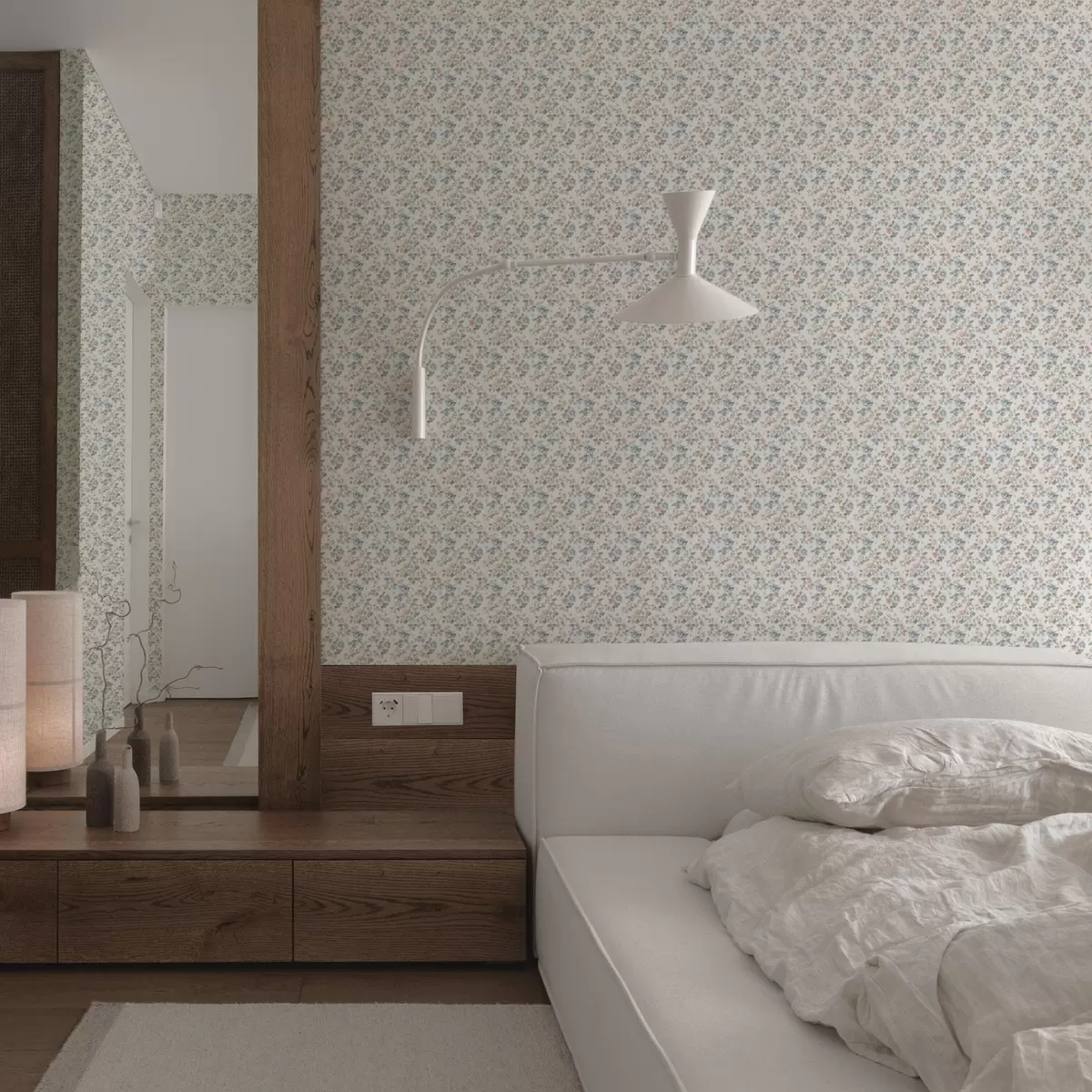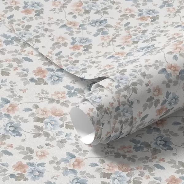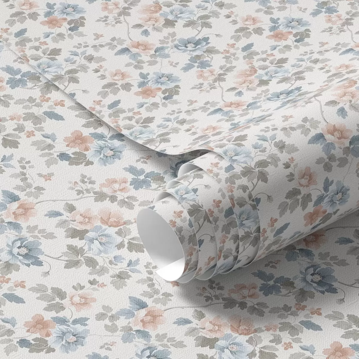 Wallpaper Small floral ornament in blue and coral tones a00347