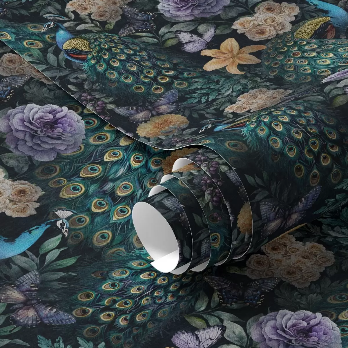 Wallpapers Peacocks among dark flowers and butterflies Nr. a00348