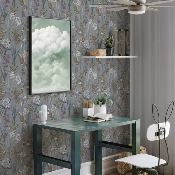 Wallpapers Floral branches on a blue-gray background Nr. a00350