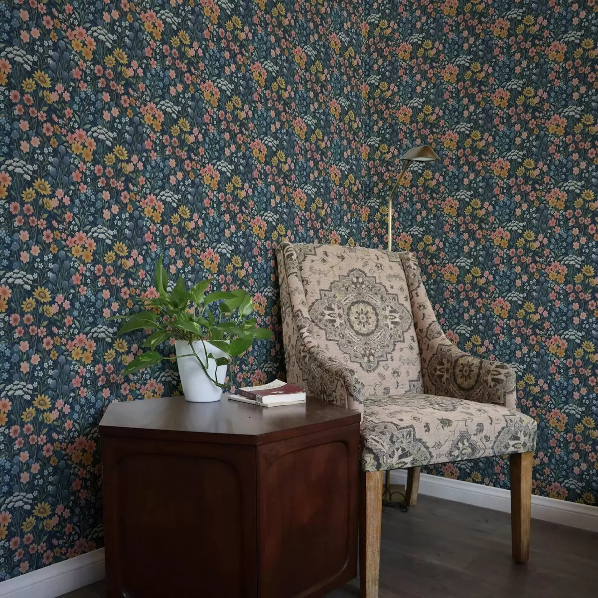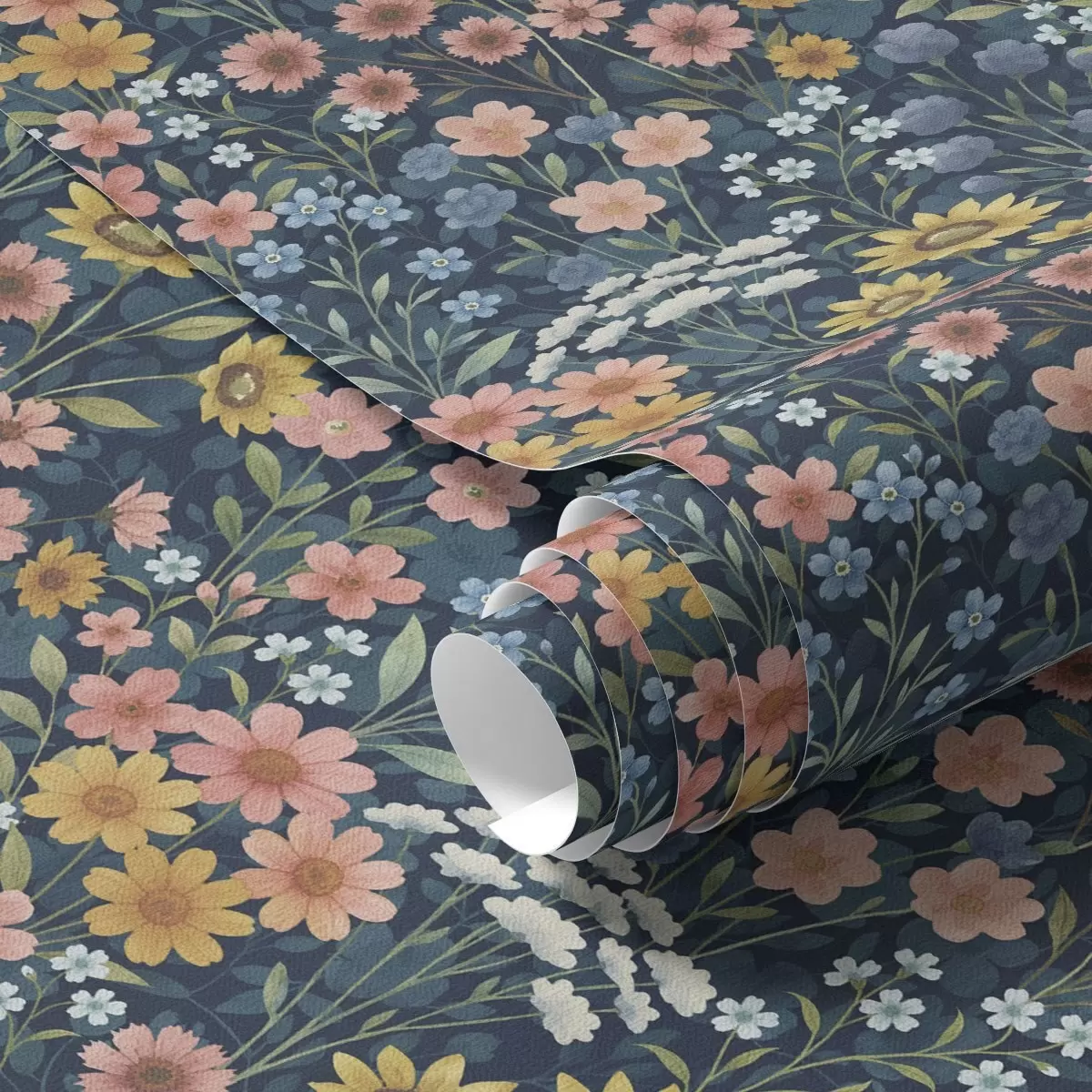 Wallpapers Colorful watercolor meadow flowers on navy blue Nr. a00381
